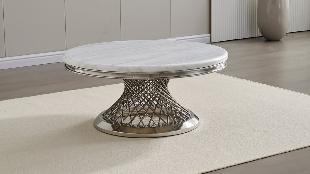 1730-REMI-COFFEE TABLE-MARBLE-SS Introducing our exquisite Coffee Table with a Chrome Base