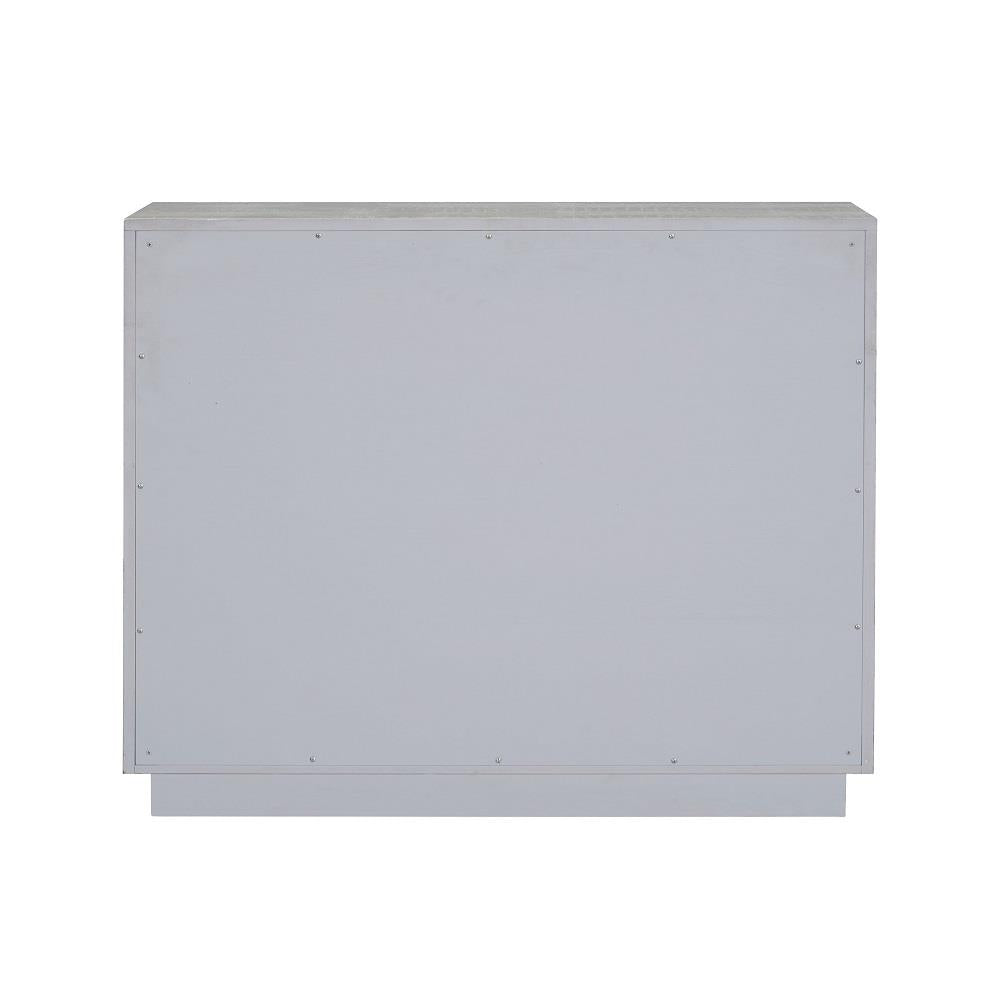 • Round Drawer Pulls: Each drawer is equipped with a large, round pull for easy opening and closing.
