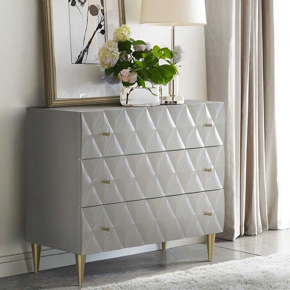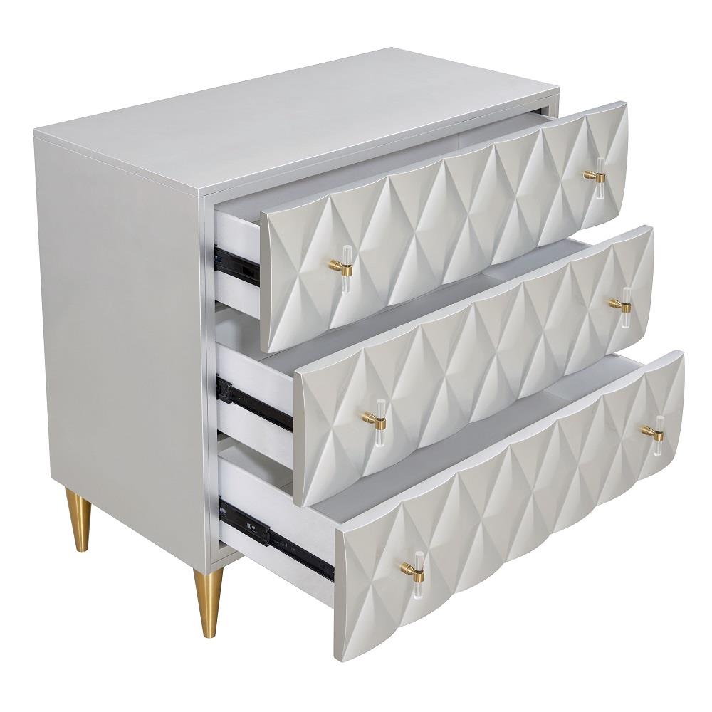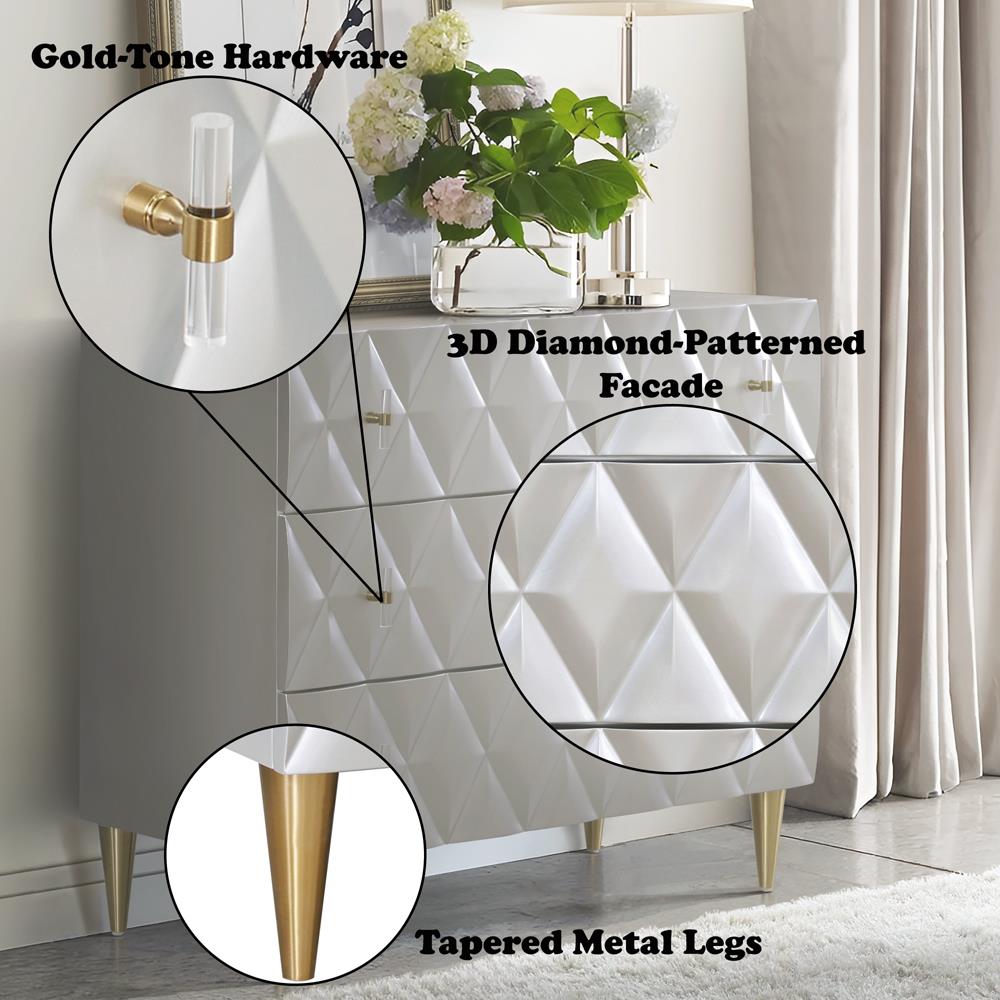 • 3D Diamond-Patterned Facade: The front of the drawers features a three-dimensional diamond pattern, adding texture and a touch of luxury.