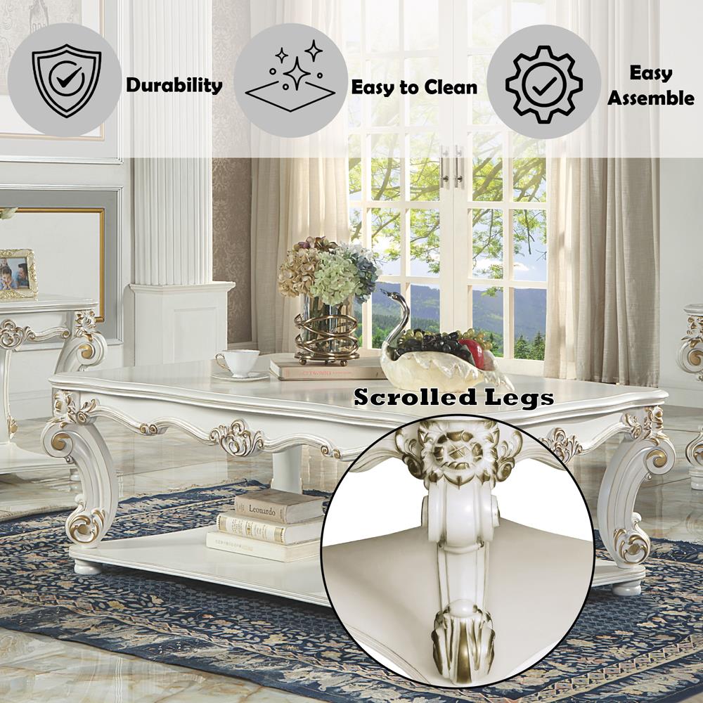 • KD, Square Table w/Scrolled Leg and Bottom Shelf