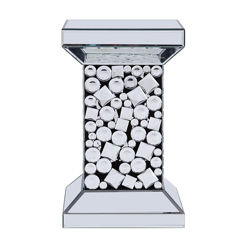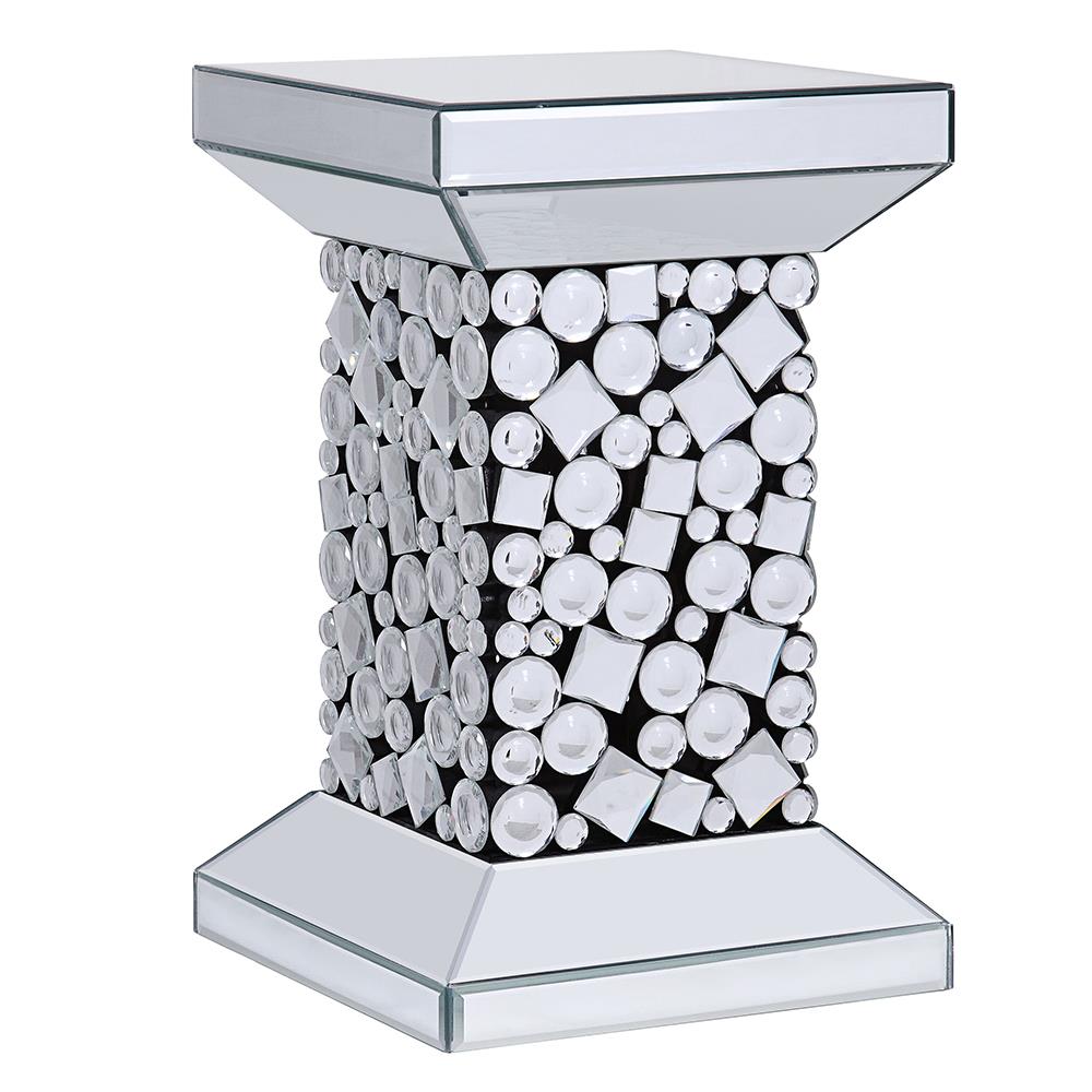 • Mirrored Column Pedestal: Faux Gem & 4mm Clear Tempered Glass w/Beveled Edge