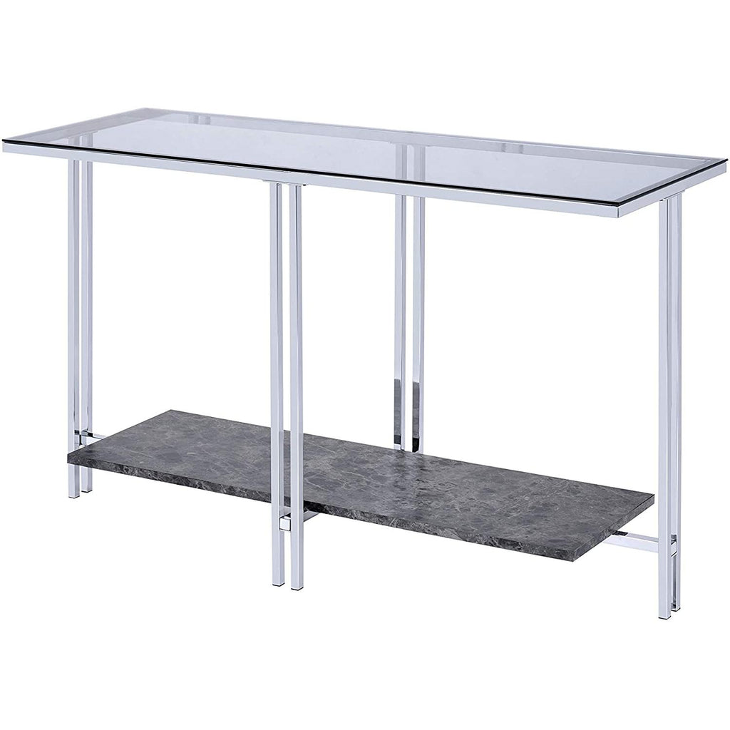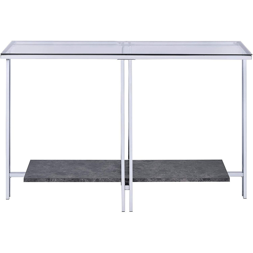 • Features: Glass Top, Faux Marble Shelf, Metal Leg Base (Open Base)