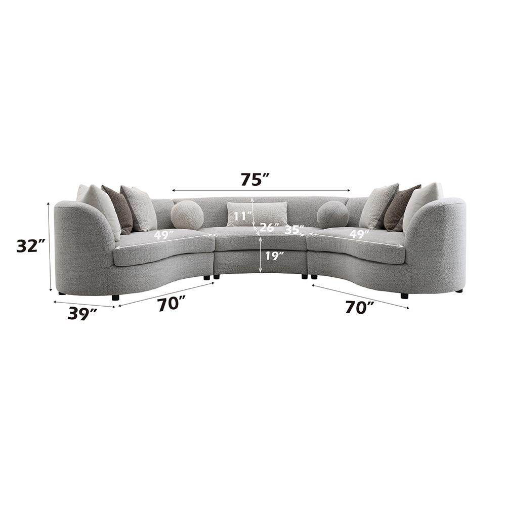 • Left Facing Curved Loveseat: 70"W x 39"D x 32"H