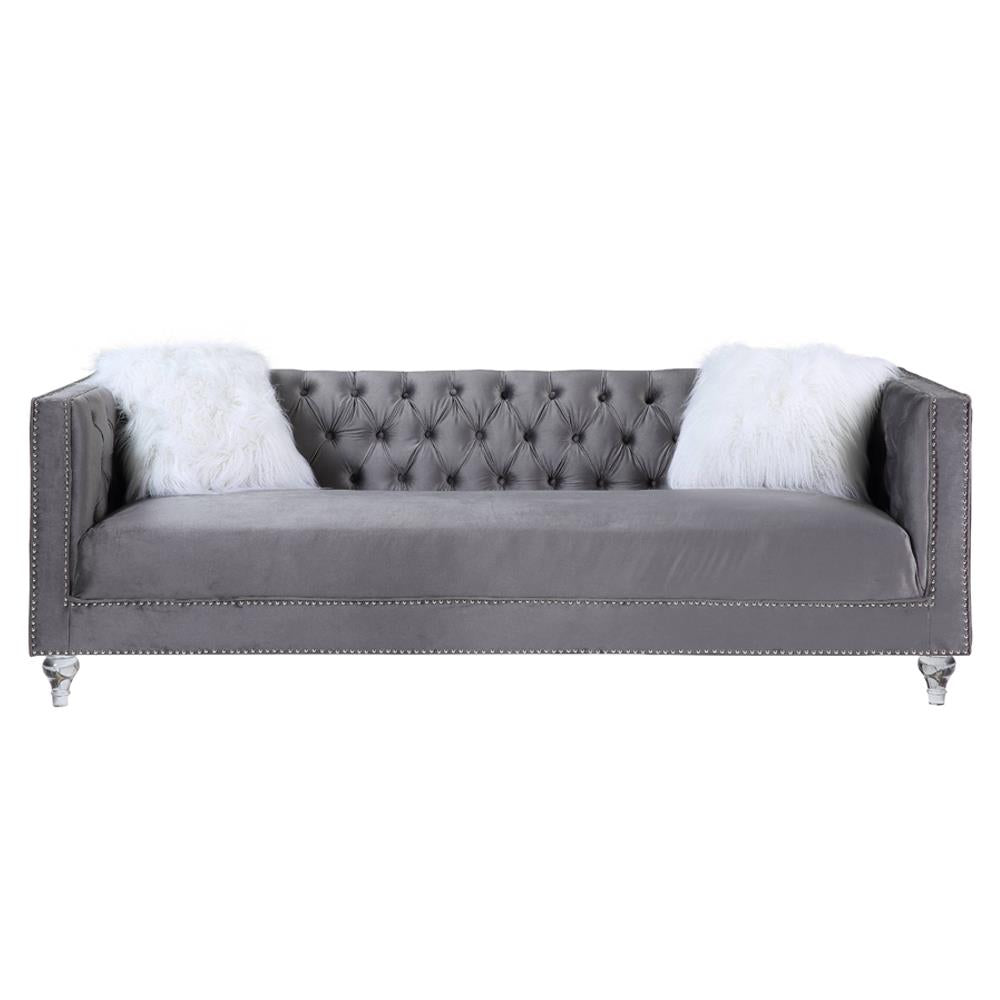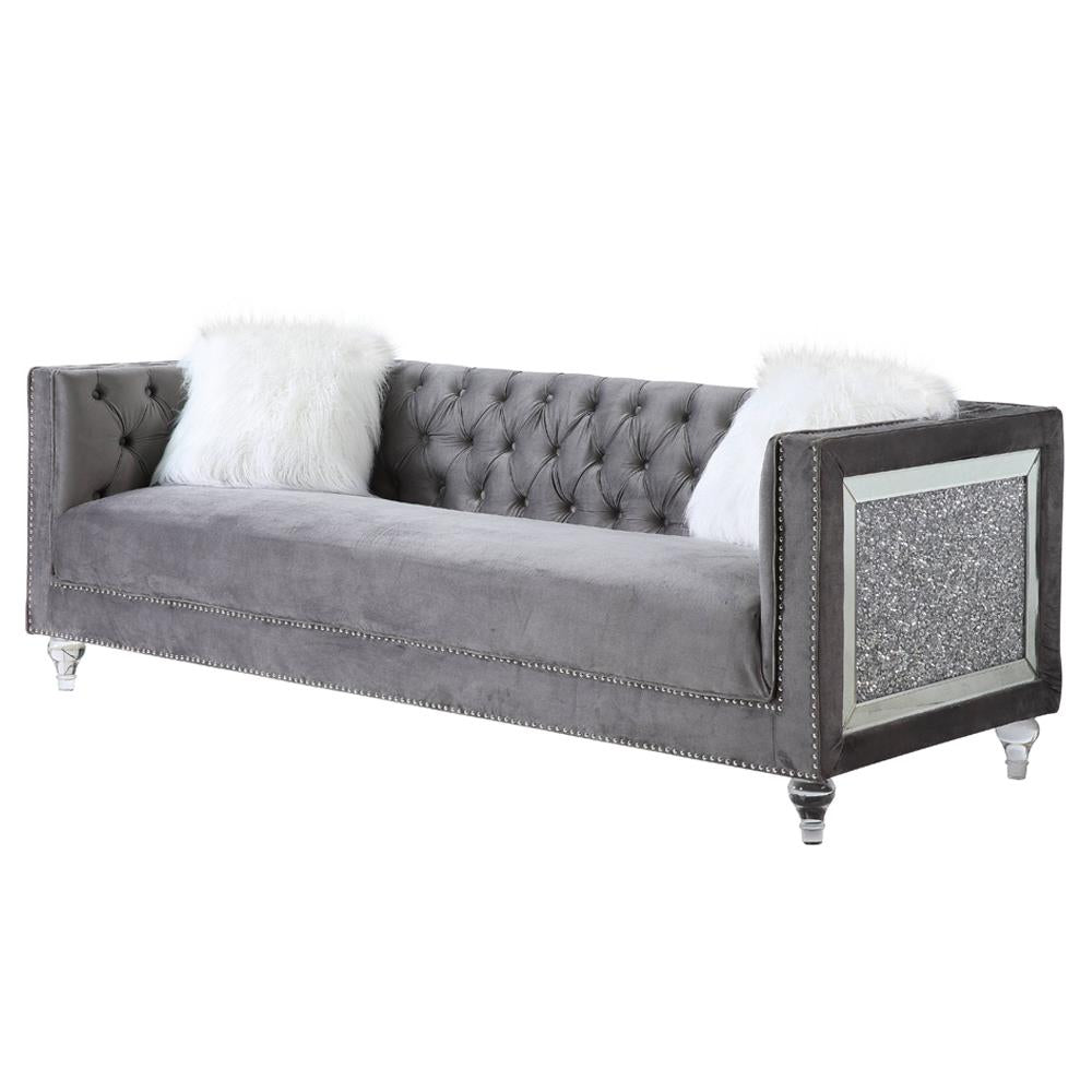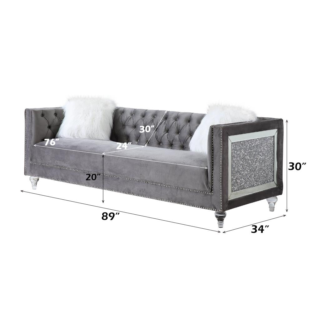 Grey Velvet & Faux Diamond Trim
