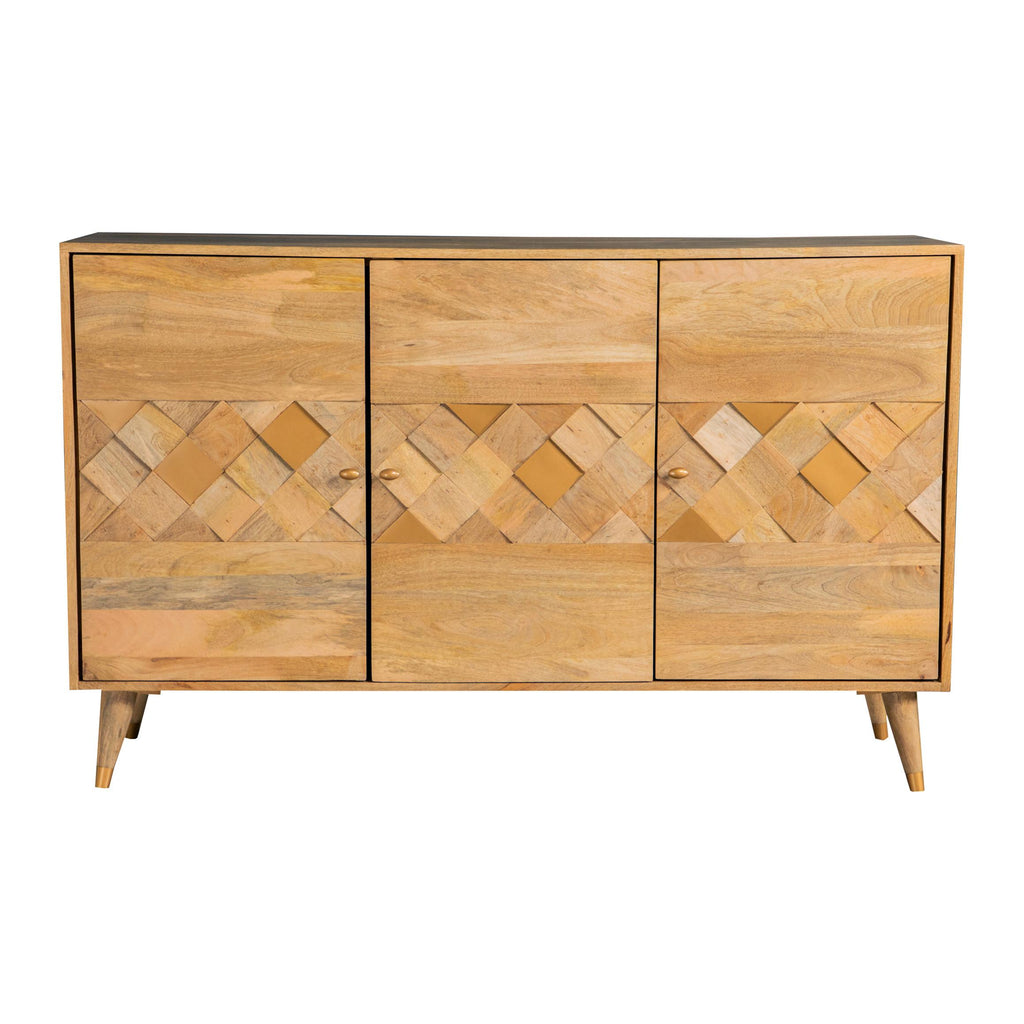 • Unique checkered pattern across the front highlighting the natural wood grains
