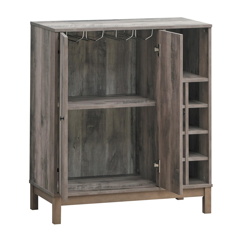 • Features two-door cabinet, stemware rack, and eight bottle wine storage