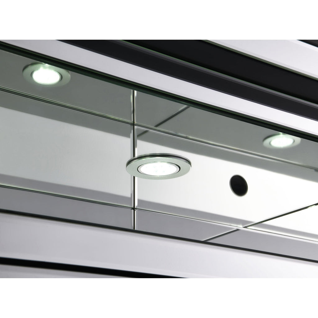 • Two puck style lights cast glow across open top shelf for a soothing ambiance