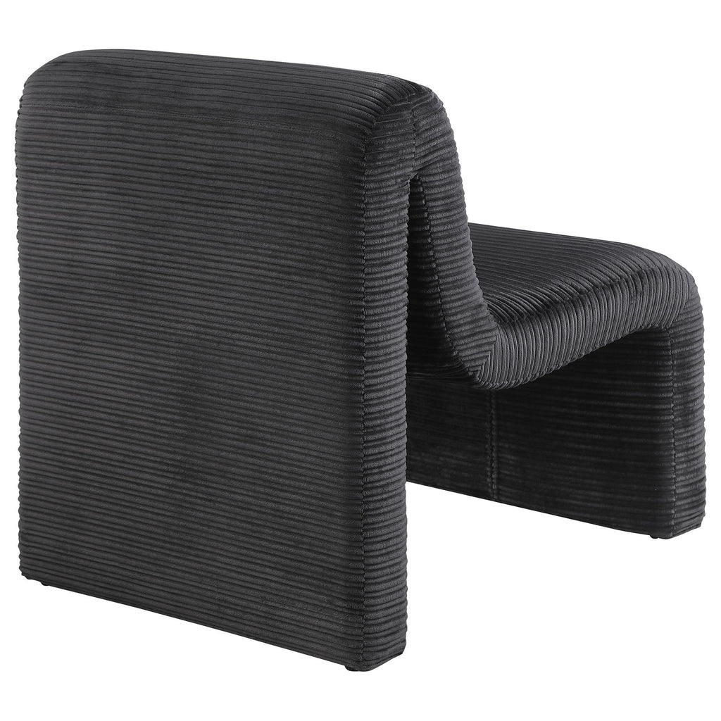 • Ribbed texture highlights neutral upholstery, creating depth for robust curvature