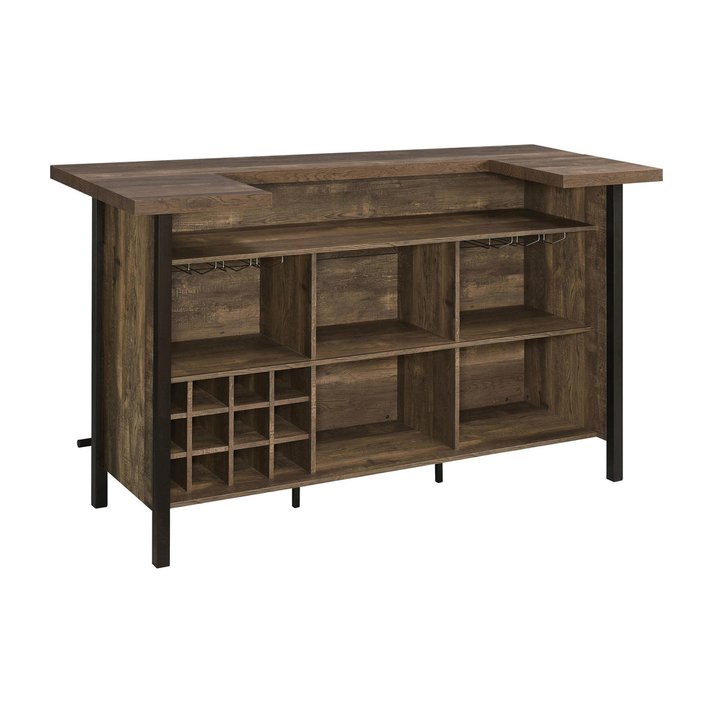 • Features six rows of stemware racks and a wine rack that accommodates twelve bottles