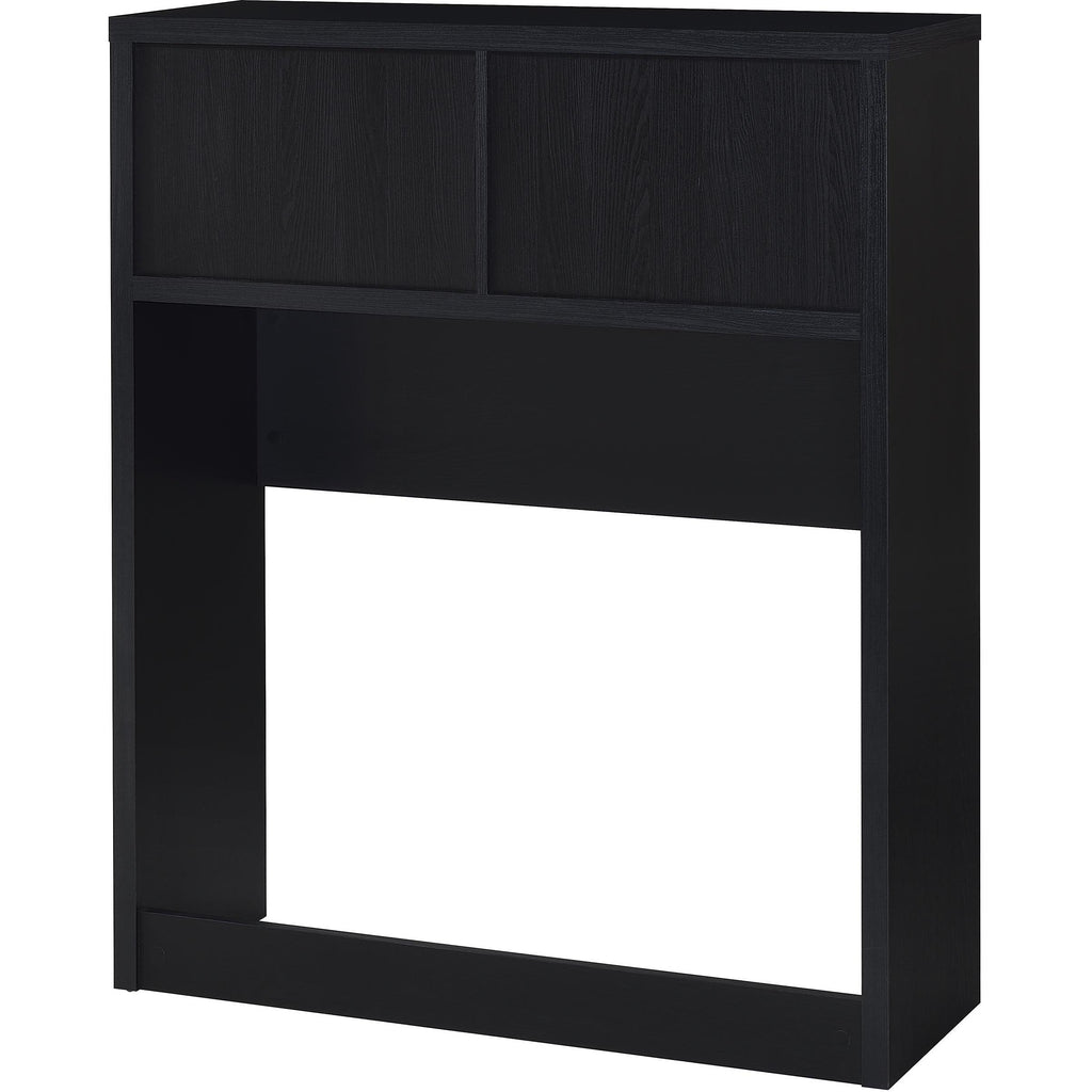 • Twin bookcase headboard with a black oak-inspired finish