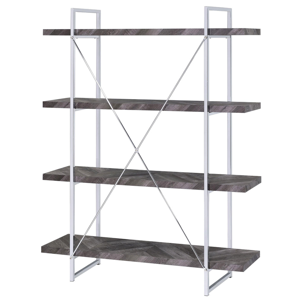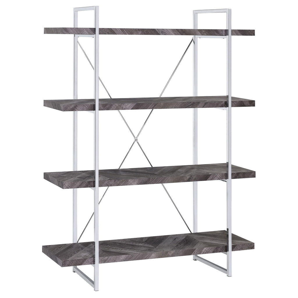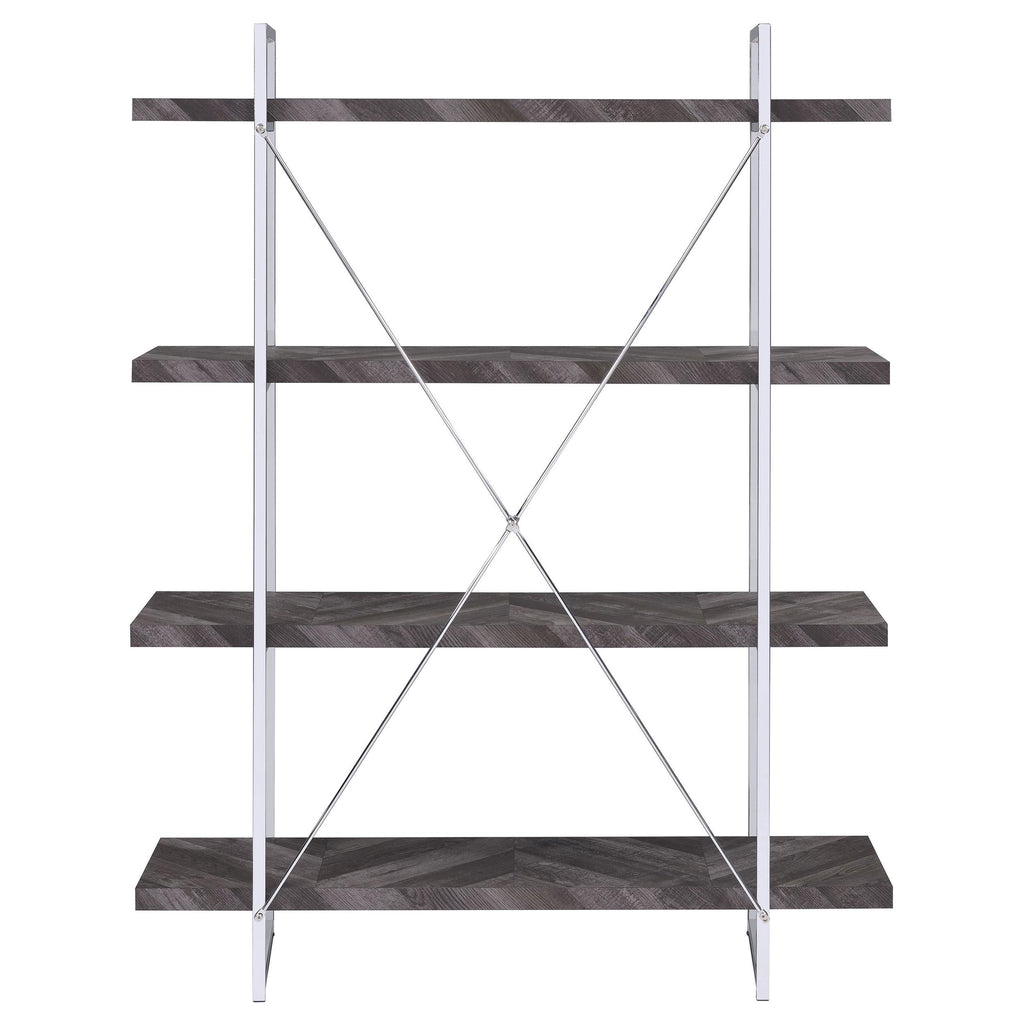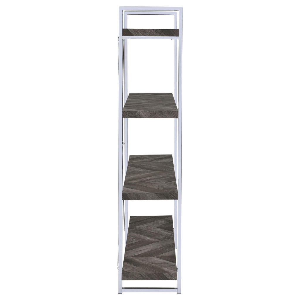 • Four (4) open shelves extend past frame for a striking modern display space for books or treasured keepsakes
