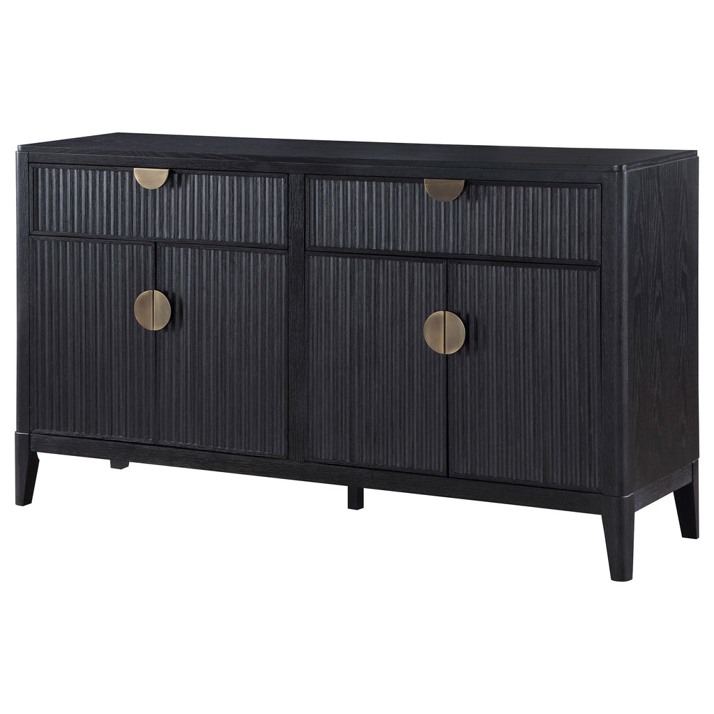 • A sideboard with a modern design aesthetic, featuring clean lines and transitional elements for added versatility