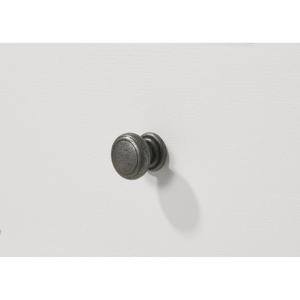 • Wire brushing adds rustic distressing to a modern farmhouse sideboard with two-tone look and natural wood top and crisp white base