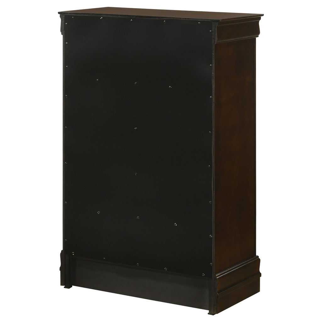 • Five-drawer chest made from wood veneer and select hardwoods for a sturdy and durable storage solution