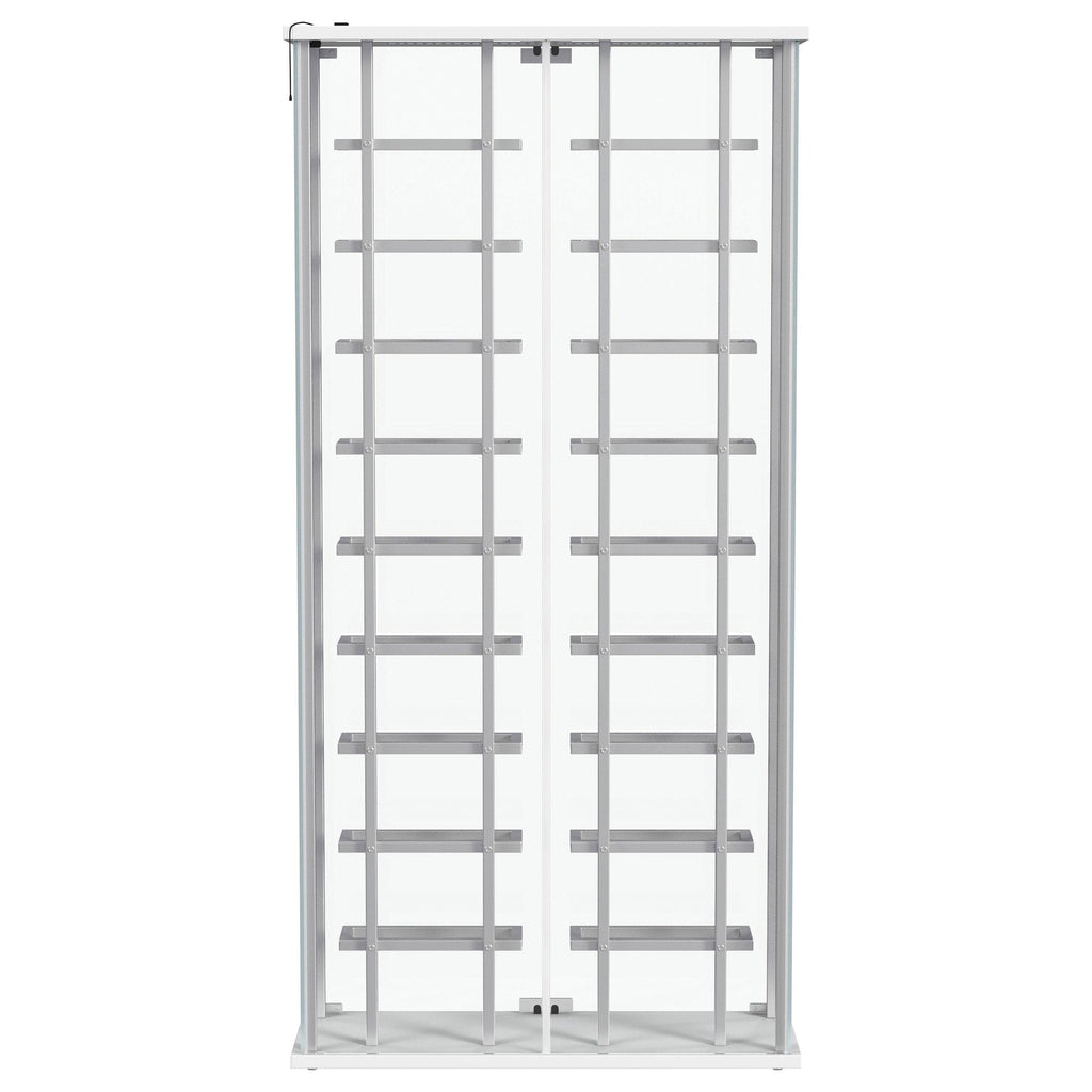 • Cabinet displays 18 bottles of wine to create a stylish presentation in a kitchen or dining room