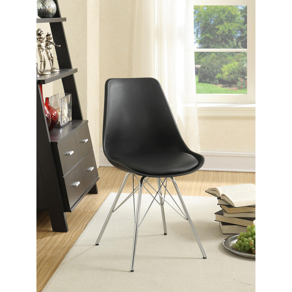 • Chrome electroplated metal Eiffel-style legs add modern angular design and stability