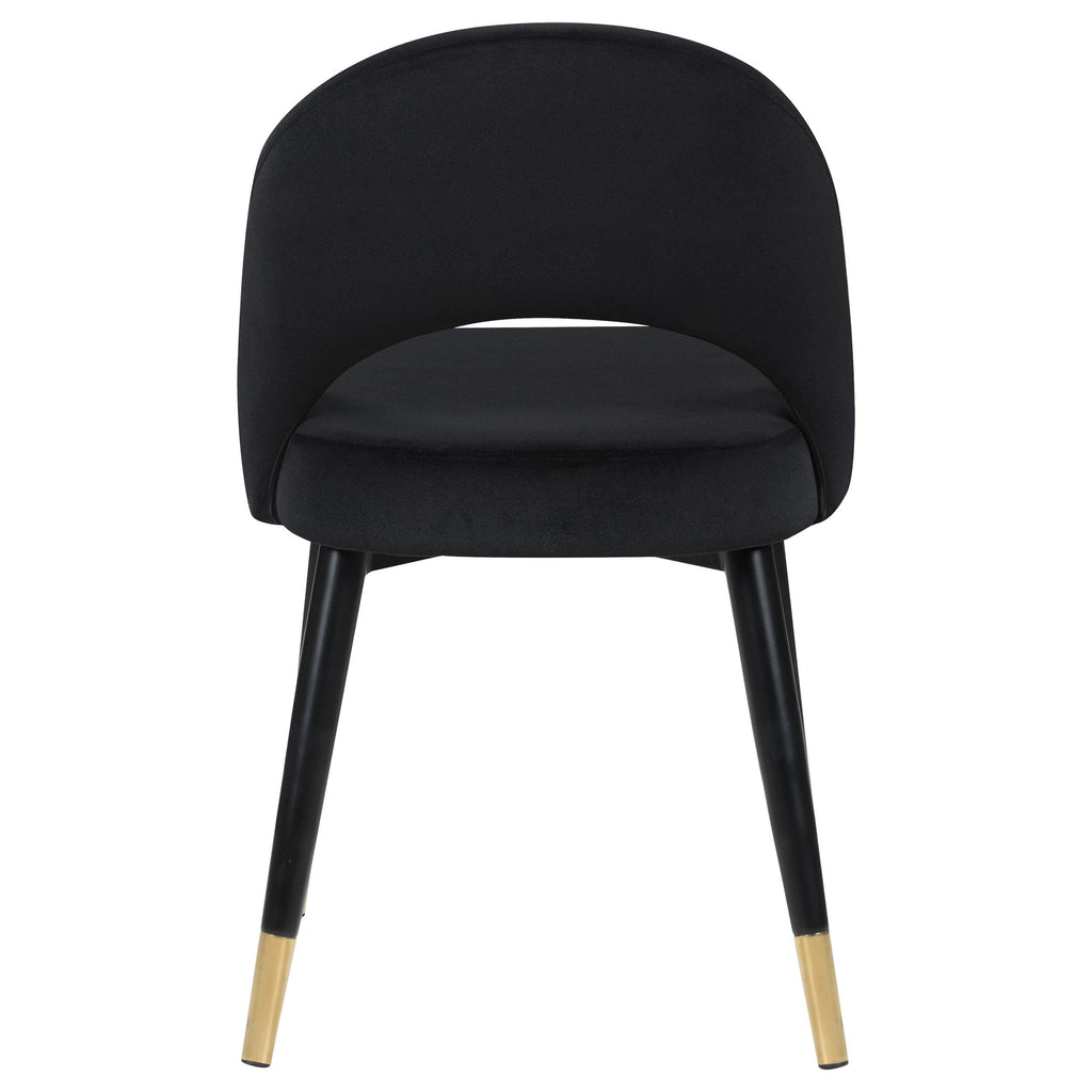 Add a touch of retro-inspired elegance to your dining room with this stylish dining side chair, featuring an elegant bucket-style... Add a touch of retro-inspired elegance to your dining room with this stylish dining side chair, featuring an elegant bucket-style seat that embodies Mid-Century modern charm. Wrapped in luxurious velvet, each chair provides a supportive, long-lasting seating experience, making it perfect for hosting dinner guests or enjoying a cozy meal. The flared, tapered legs, finished with dramatic gold-capped feet, add a regal Hollywood glam touch that enhances any dining space. This versatile chair effortlessly complements various color palettes and brings a bold statement to both formal and casual settings. Pull these chairs up to a spacious rectangular dining table to create an inviting and chic atmosphere for any gathering. View more