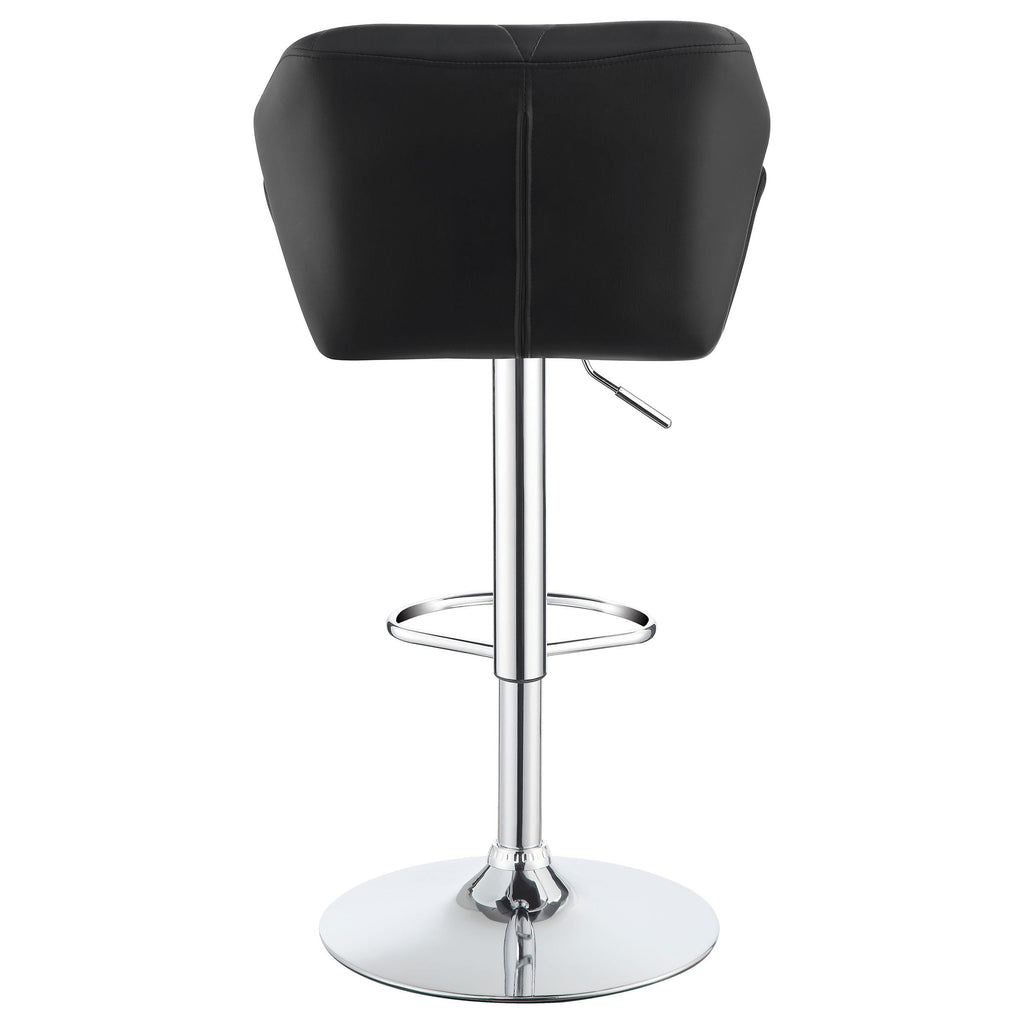 • Invite cozy comfort and subdued glamour into your home with this modern, adjustable bar stool featuring luxe, leather-like upholstery adorned with stylish tufting and a metal base boasting graceful lines and a shining chrome finish