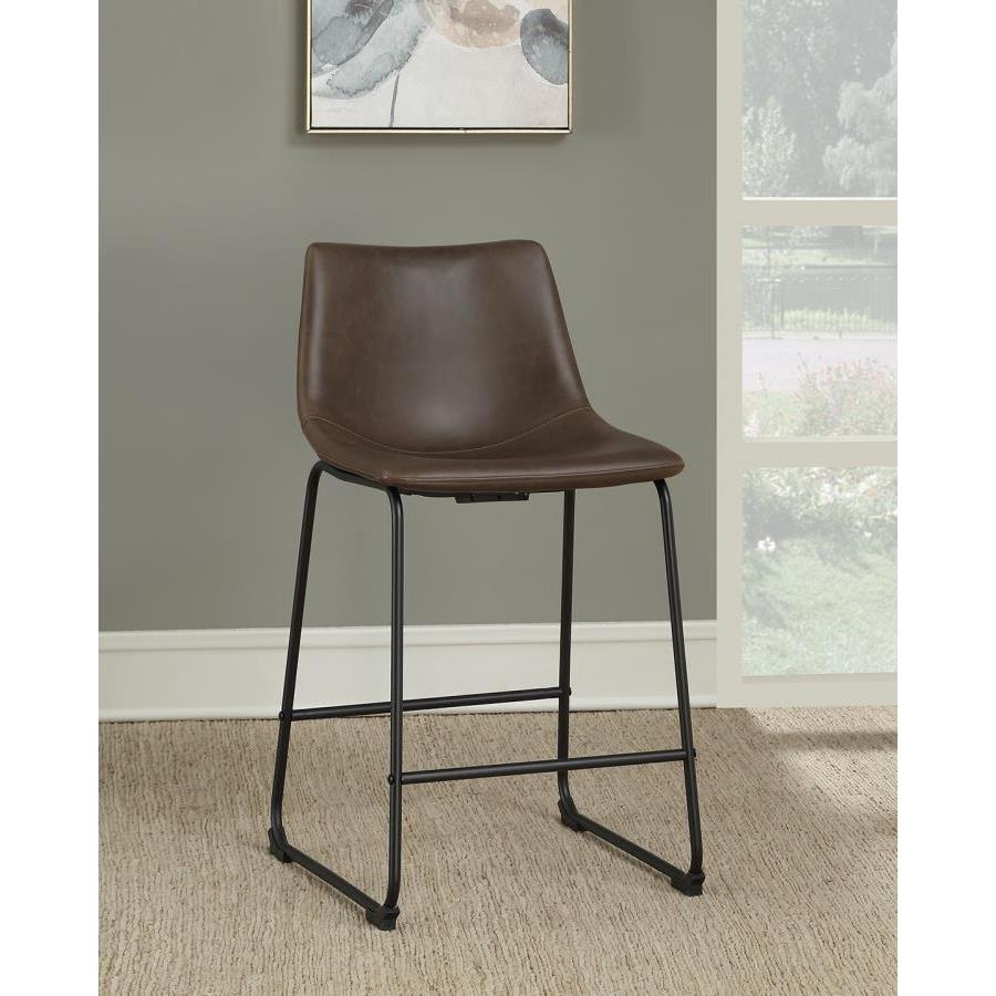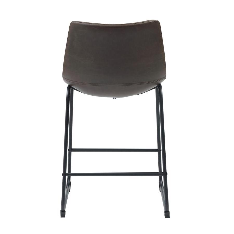 • Enhance your counter seating with these armless counter height stools in a captivating two-tone brown and black combination, adding an industrial touch to your space