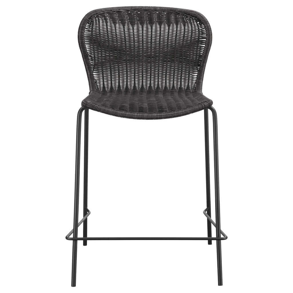 • Contemporary stool with mid-century-inspired aesthetic featuring brown faux rattan seat and open, airy frame