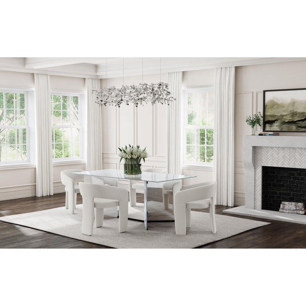 • Sleek silhouetting and mirrored surfaces pairs with angular design in a contemporary dining table