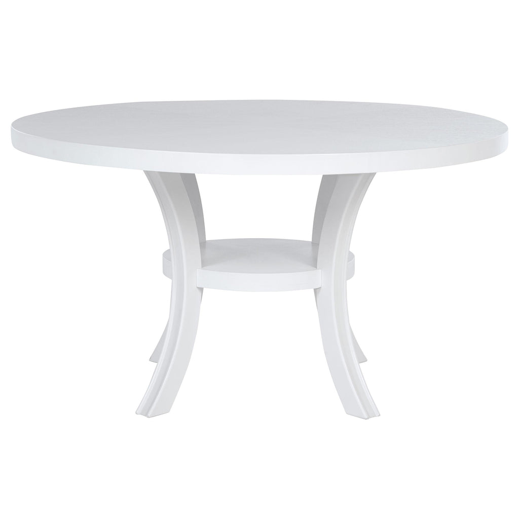 • Simple, clean aesthetics define this modern round dining table for your kitchen or dining room