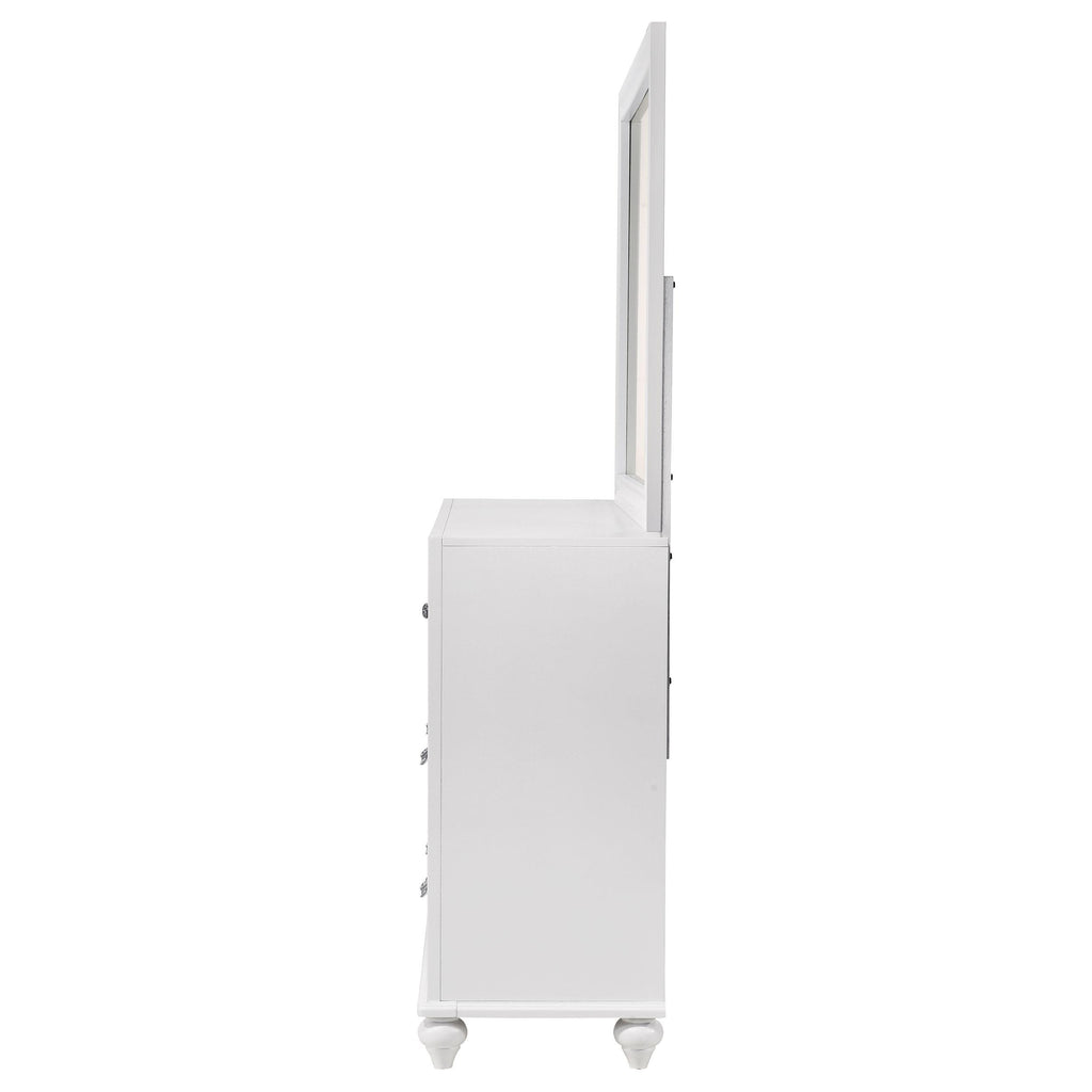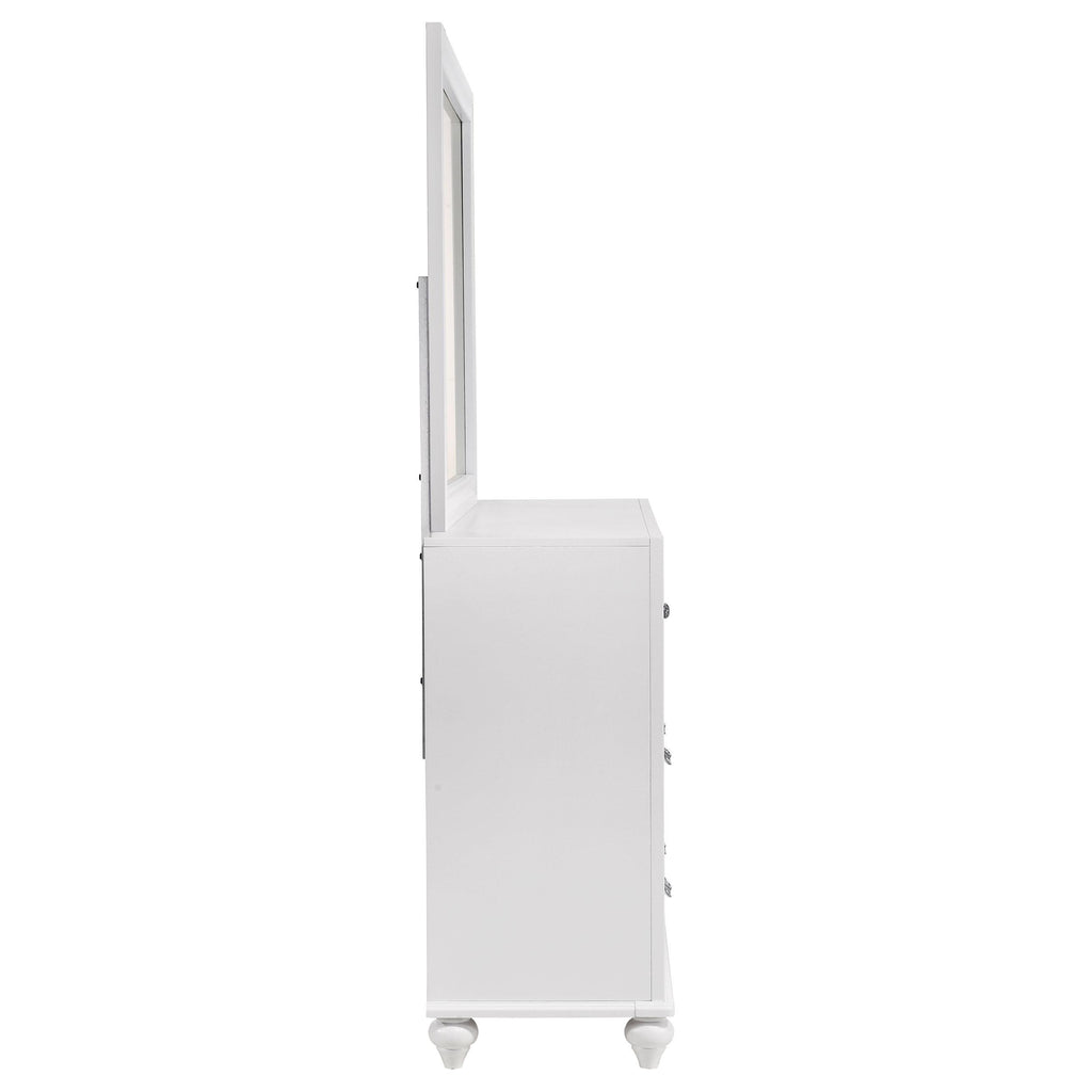 • White finish on mirror provides a light, airy look and durability