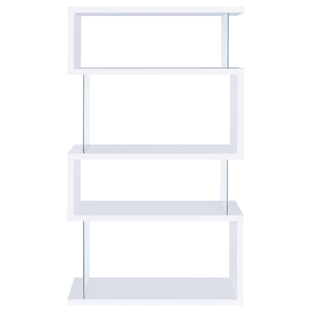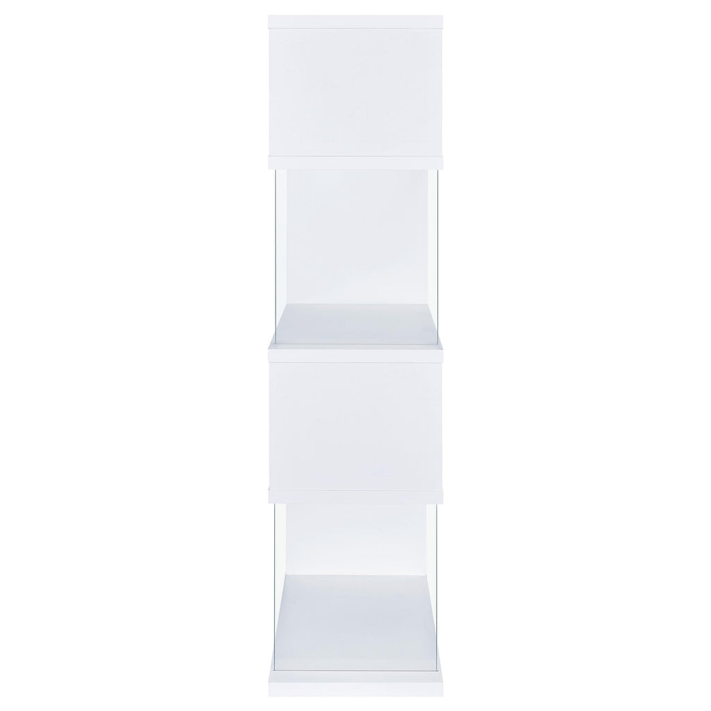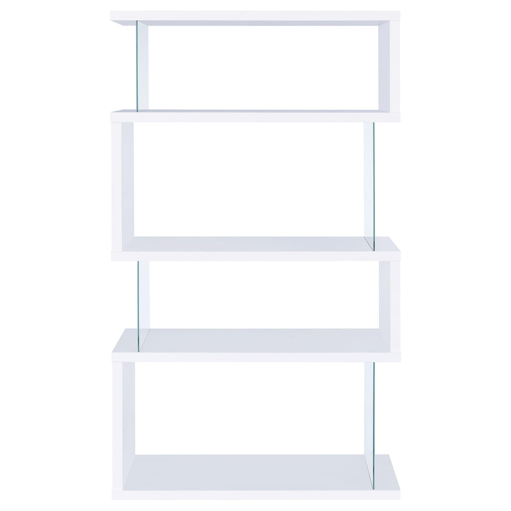 • Features clear tempered glass panels and four (4) tiers of shelving for a modern arrangement of books or collectibles