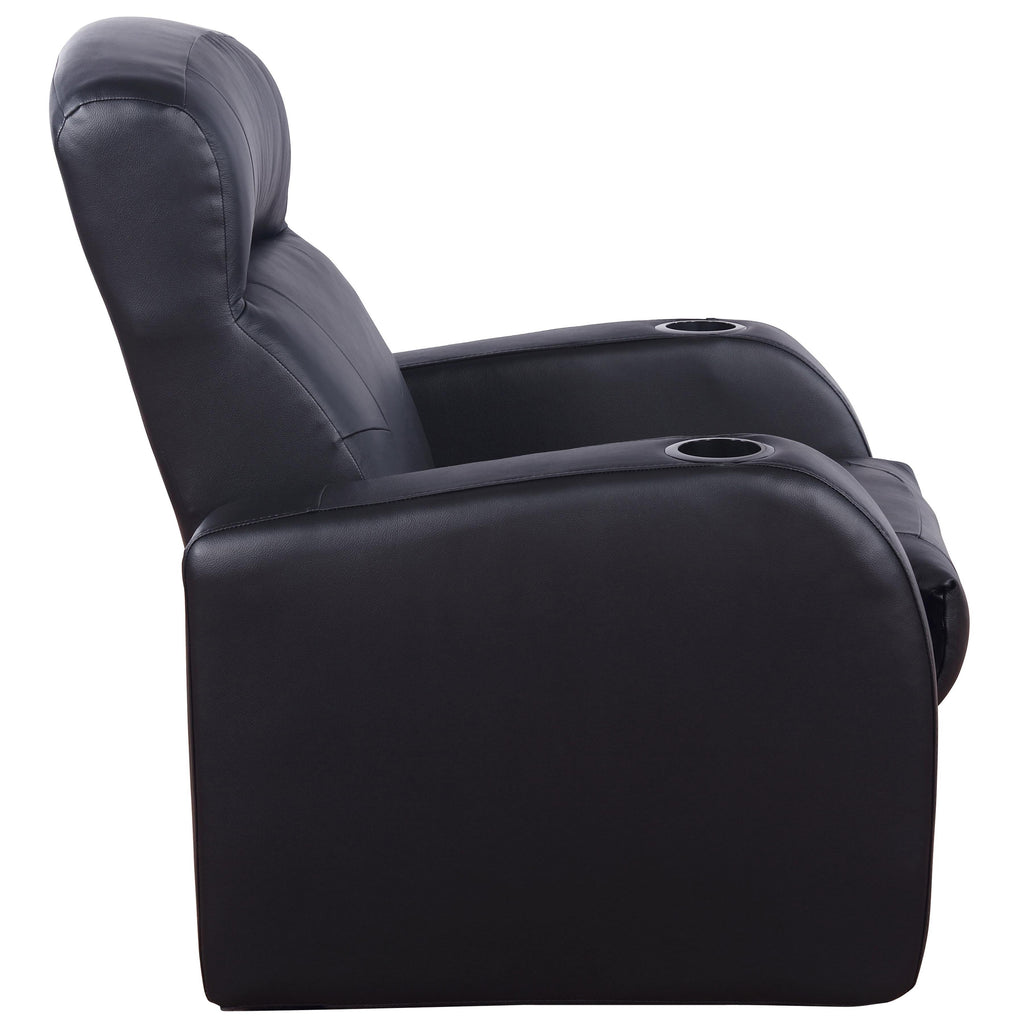 • Home theater collection upholstered in black top grain leather everywhere the body touches