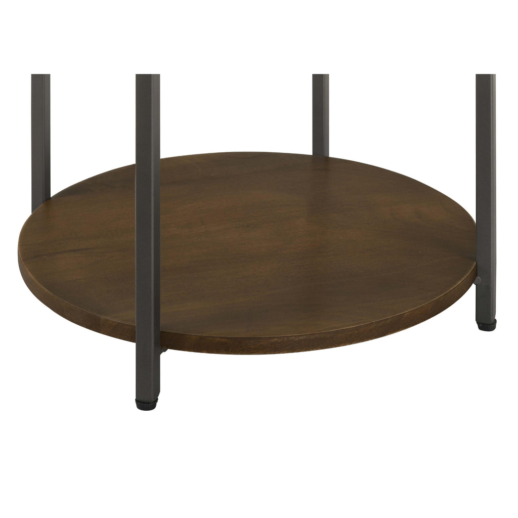 • Solid mango wood shelf with a warm brown finish for added storage space