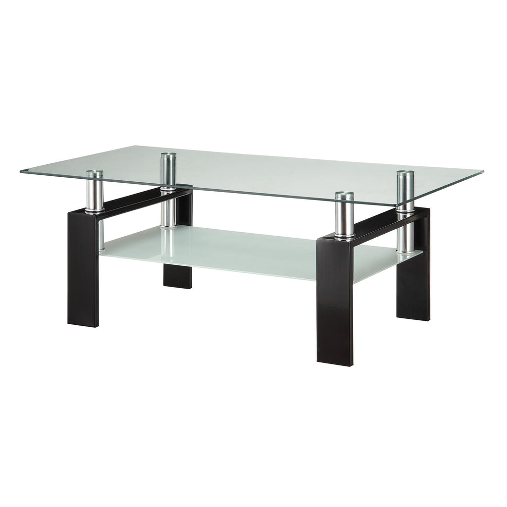 • Rectangular cocktail table with a sleek clear tempered glass top design