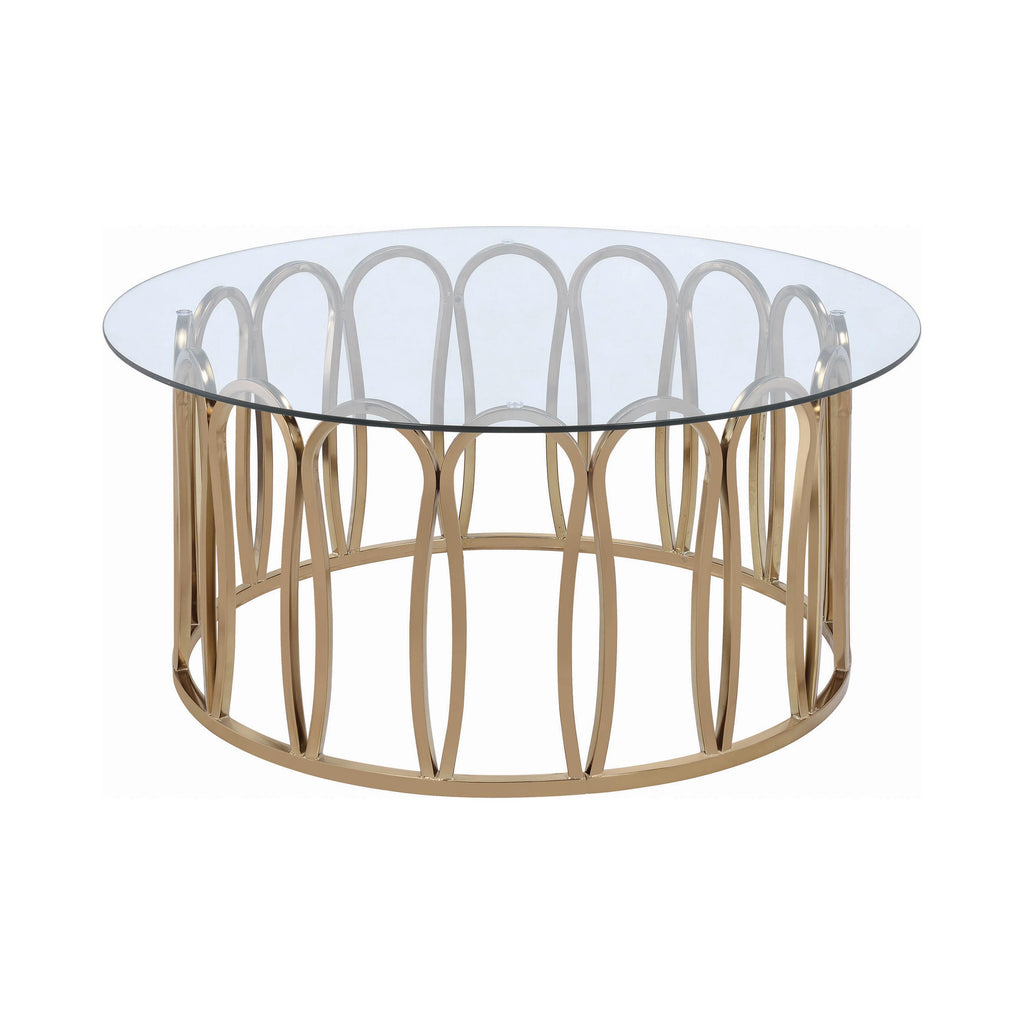 • Round coffee table with a clear tempered glass top for durability and style