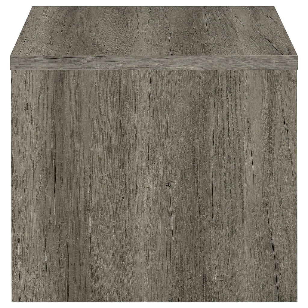 • Rustic end table with a stylish gray wood-look finish that enhances its natural charm