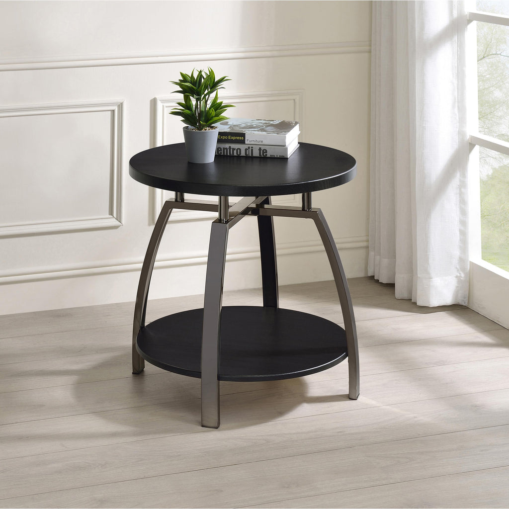 • Round end table featuring a modern silhouette that complements contemporary living spaces
