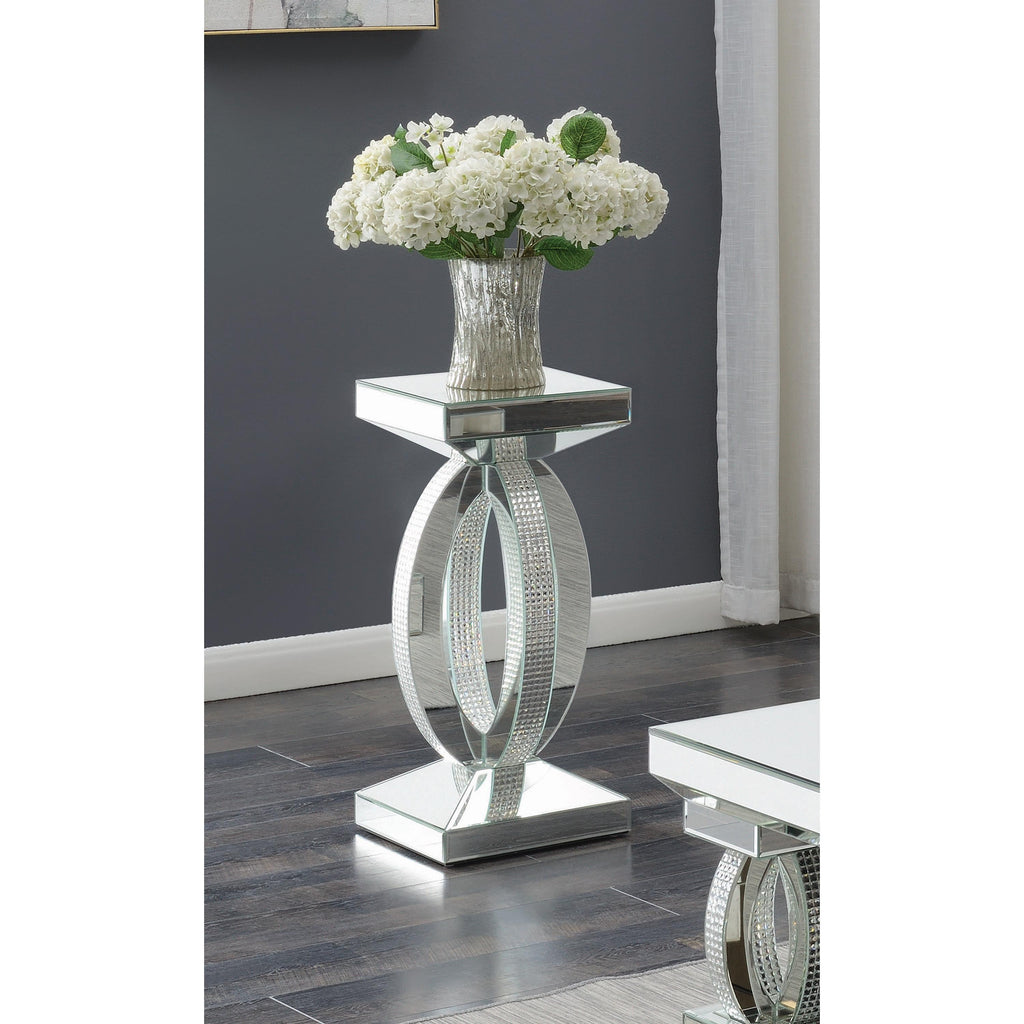 • Made with mirrored surfaces and engineered wood for modern appeal