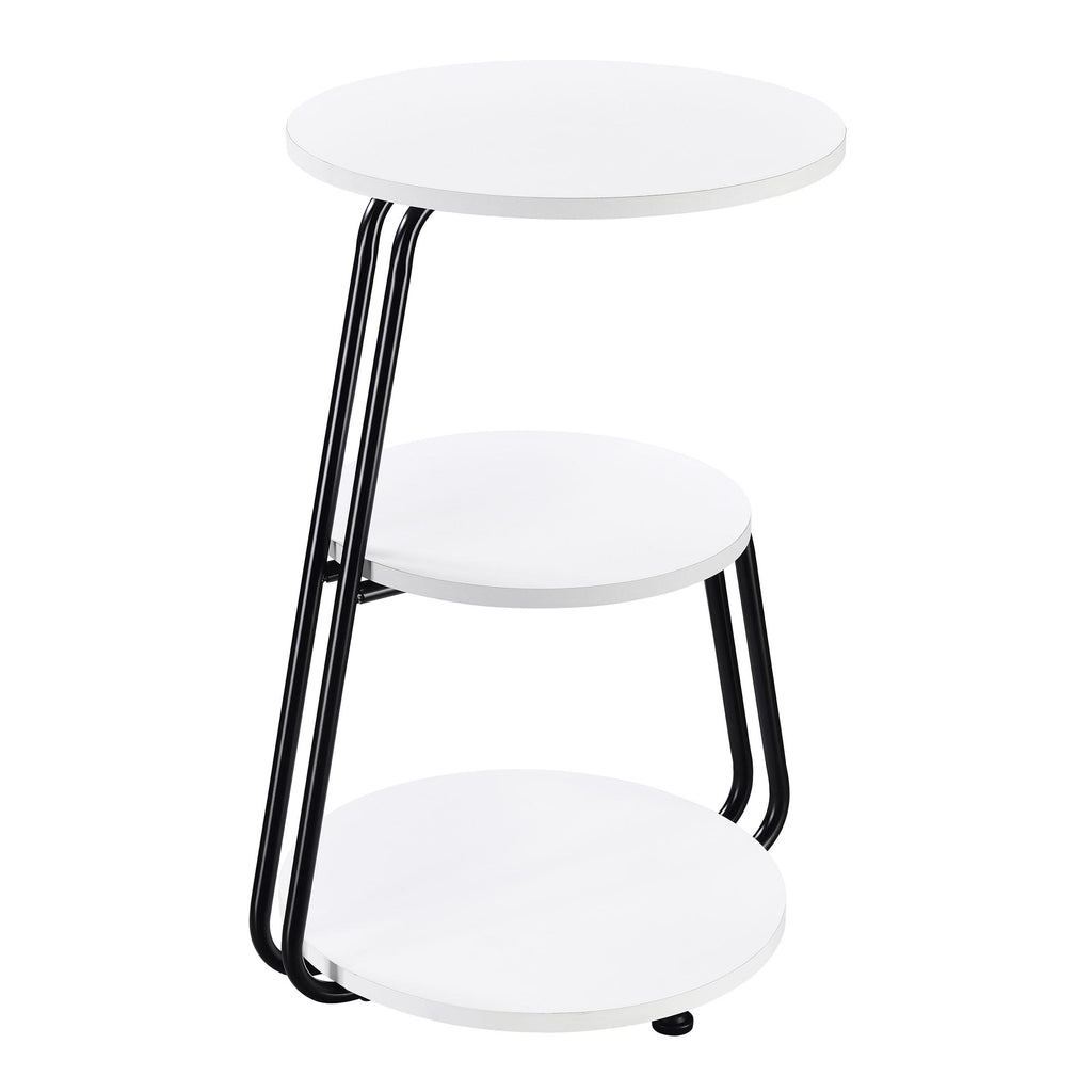 • Bright white finish and black metal frame create a modern look