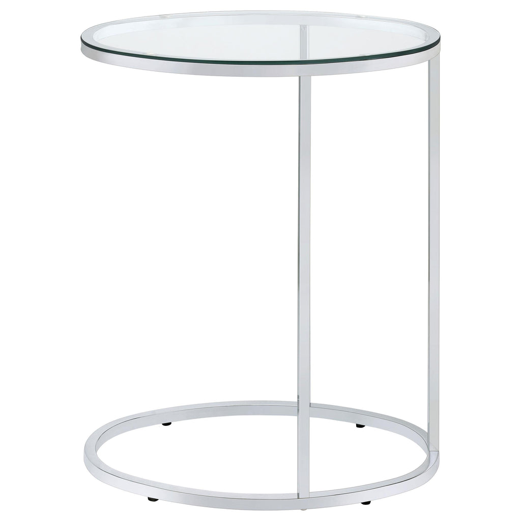 • Oval side table with a clear tempered glass top for a sleek, durable surface
