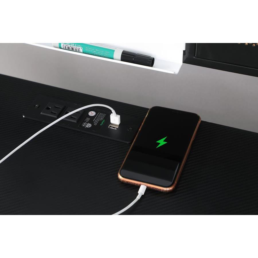 • Features a water and stain-resistant carbon fiber textured PVC desk top