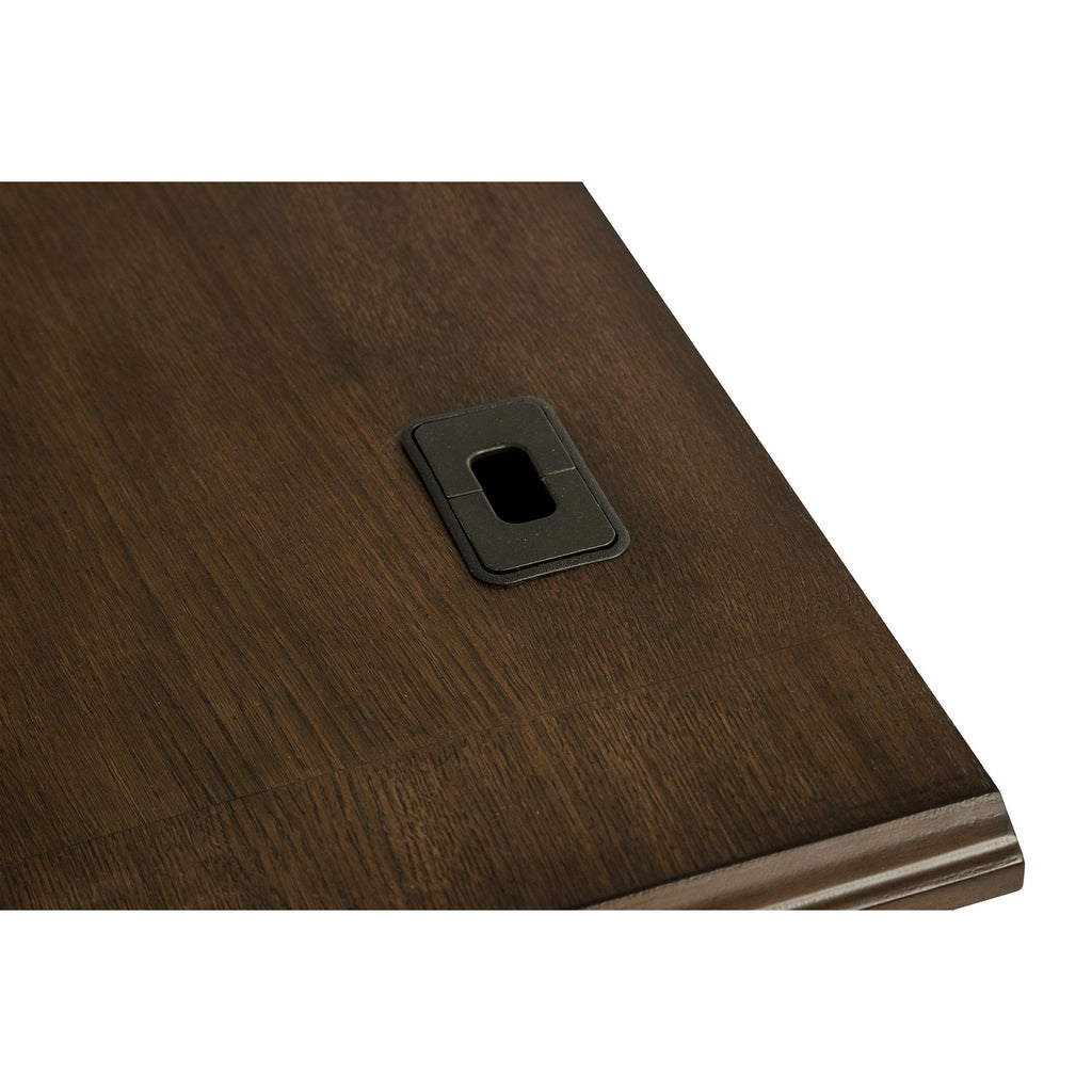 • Credenza includes a power outlet (2AC/2USB), center keyboard drawer, two top drawers and middle drawer with removable dividers, one lockable file cabinet, and a cabinet with an adjustable shelf