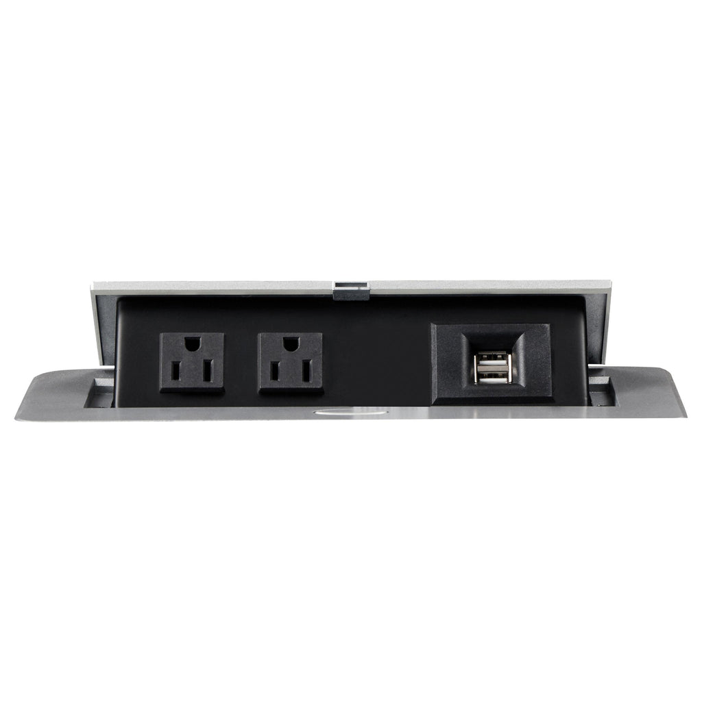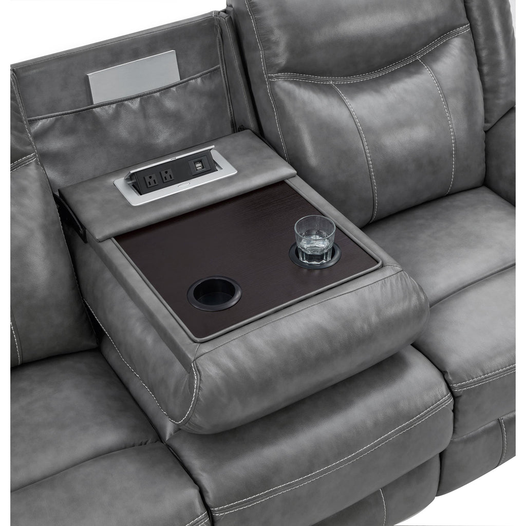 • Sofa features drop-down table with pop-up power outlet (2AC/2USB), two (2) cup holders, and storage drawer