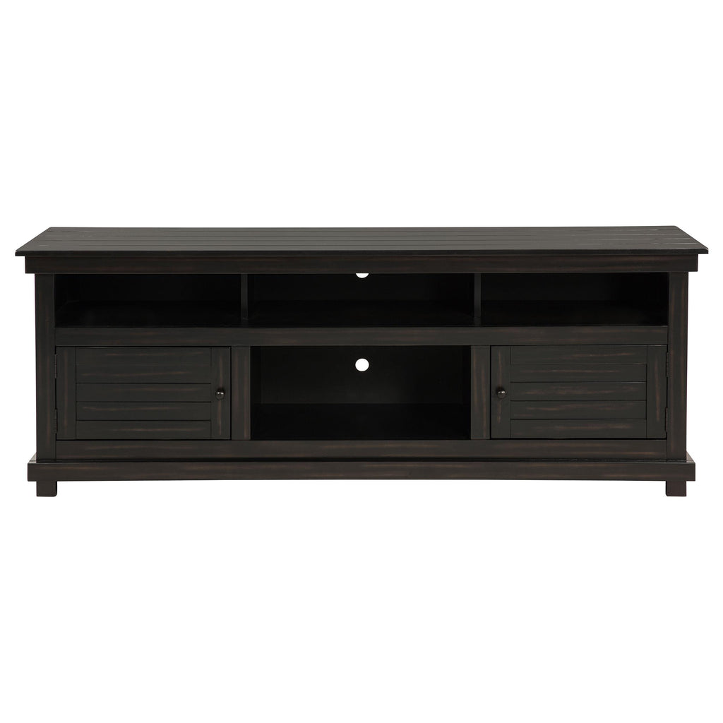 • A slim, straight-lined silhouette supports a flat panel television up to 72 inches