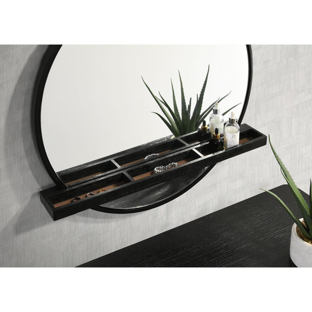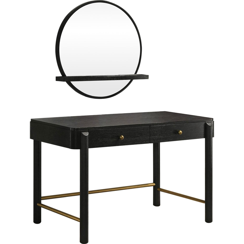 • Two-piece makeup vanity set includes a vanity table and a round wall-hanging vanity mirror