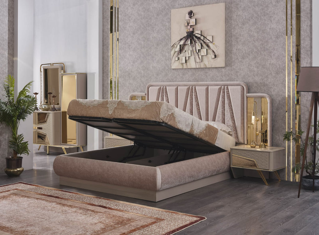 Bed With Storage : W:74.00'' D:86.00'' H:56.00'' Night Stands         : W:25.98'' D:18.11'' H:18.50'' Dresser Mirror       :W:57.00''... Bed With Storage : W:74.00'' D:86.00'' H:56.00'' Night Stands         : W:25.98'' D:18.11'' H:18.50'' Dresser Mirror       :W:57.00'' D:18.11'' H:72.00'' Small Dresser       : W:24.00'' D:17.00'' H:34.25''   View more