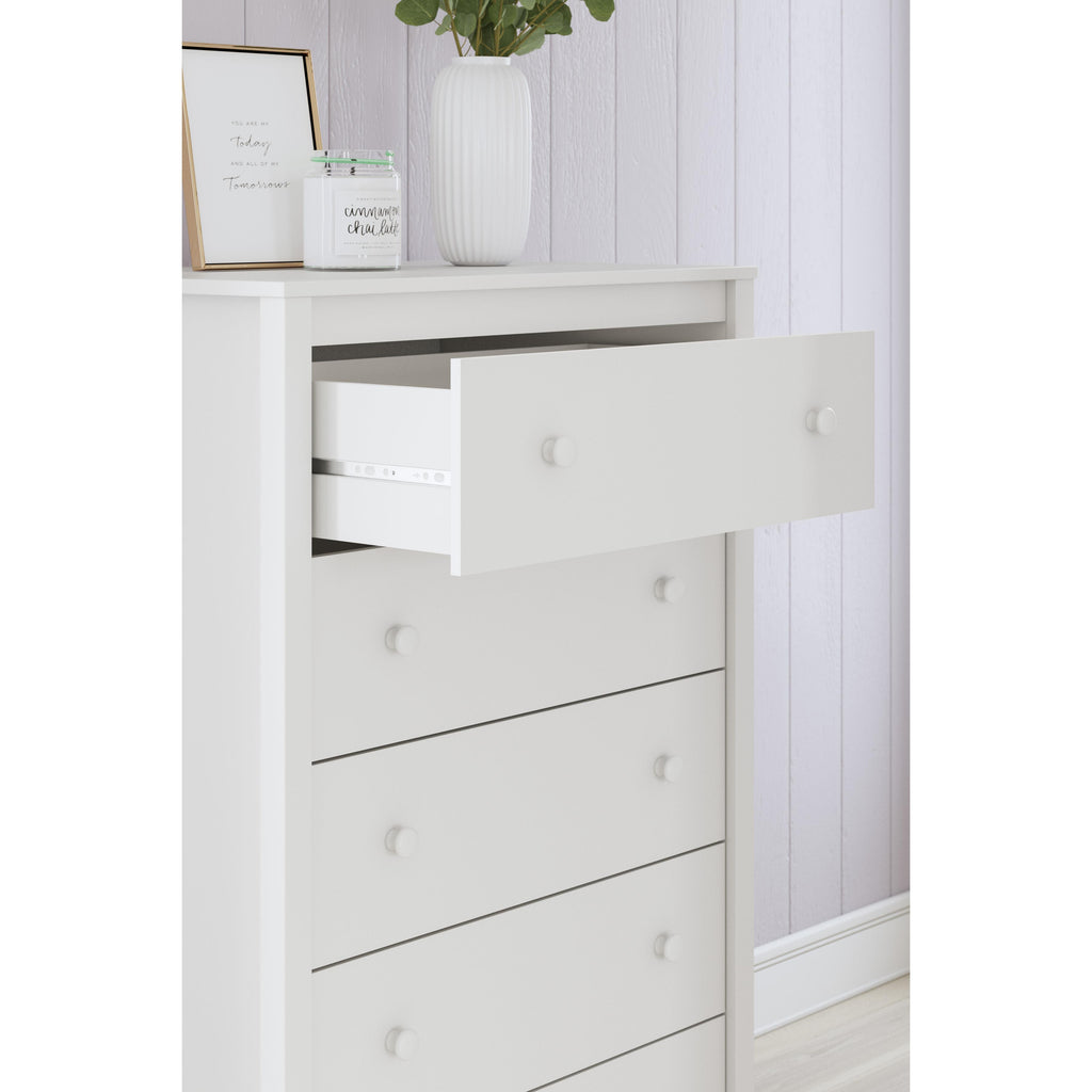 • 5 smooth-gliding drawers with vinyl-wrapped sides and back for durability