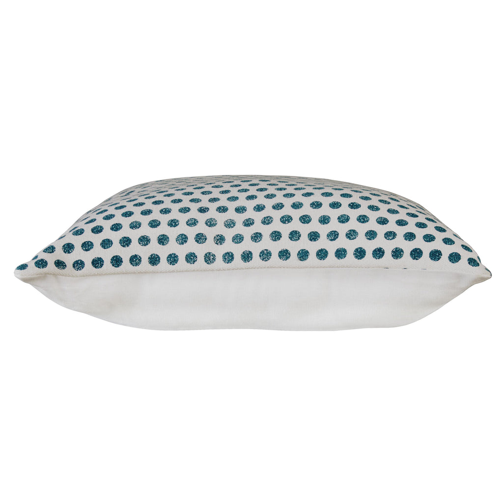 Enhance your at-home accents with the reserved excitement of this pillow. Teal dots decorate a white background, balancing a bold... Enhance your at-home accents with the reserved excitement of this pillow. Teal dots decorate a white background, balancing a bold design with classic construction. Pairing a posh look with the plush softness you crave, this pillow makes for a cozy addition to your contemporary space. View more