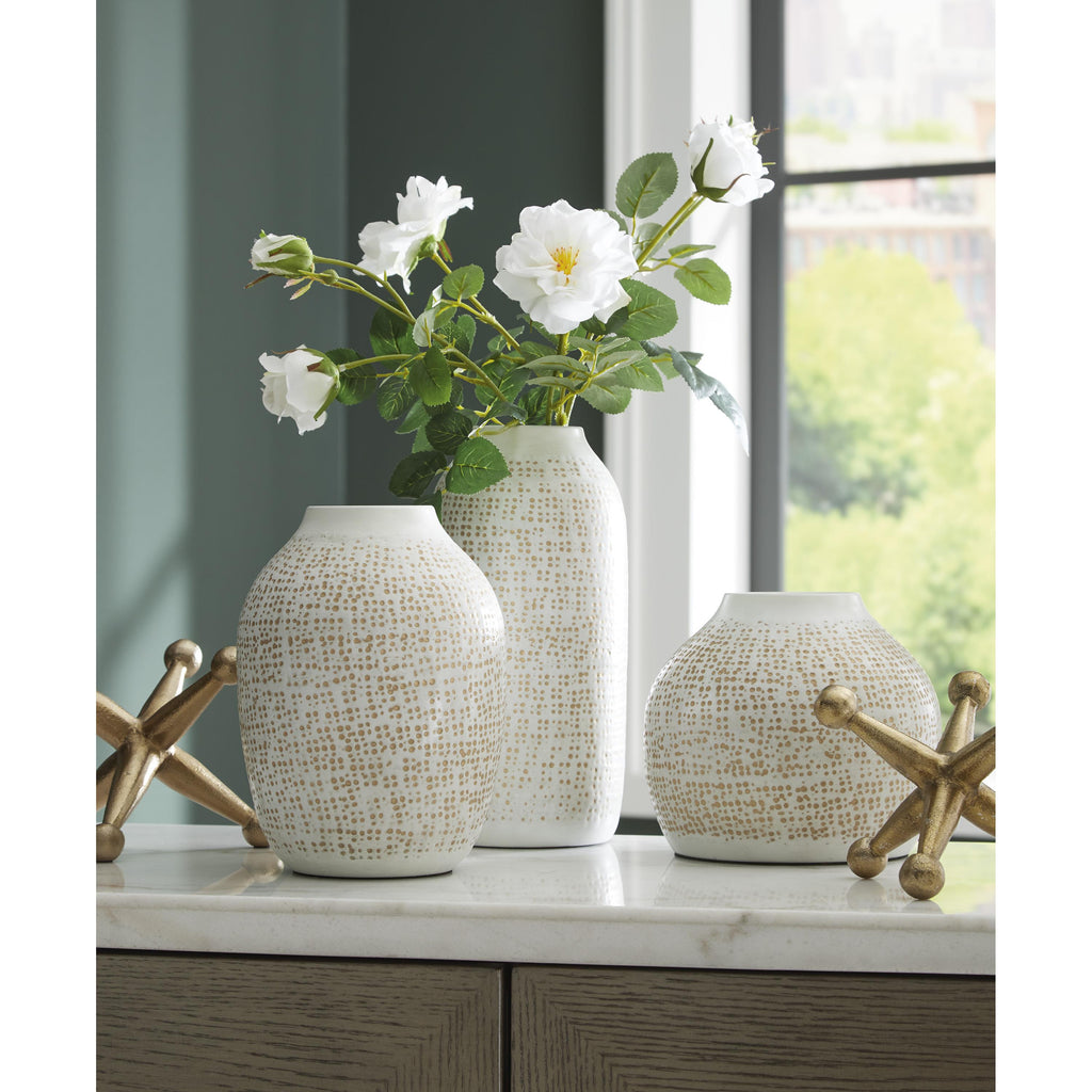 • Vases with white finish and goldtone accents