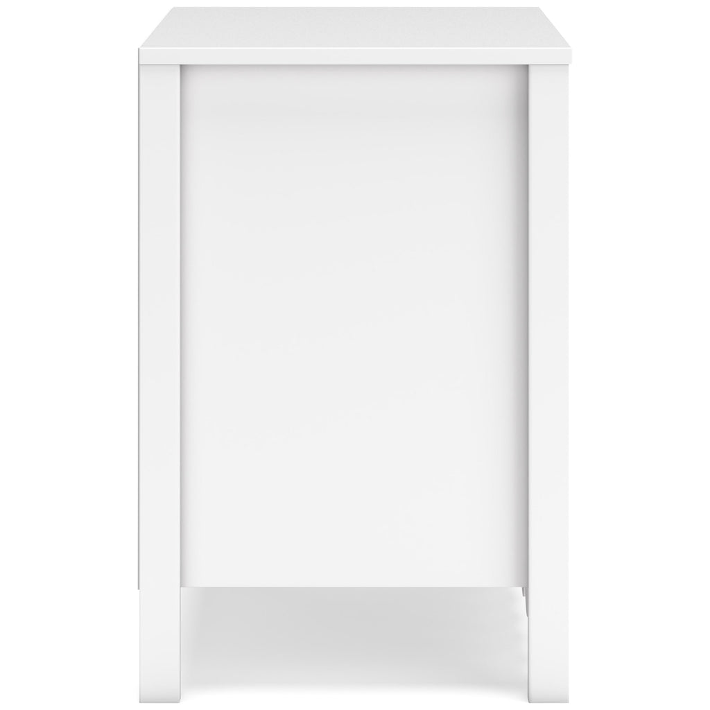 • 2 smooth-gliding drawers with vinyl-wrapped sides and back for durability