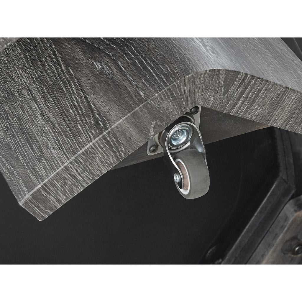• Legs with replicated weathered gray wood grain