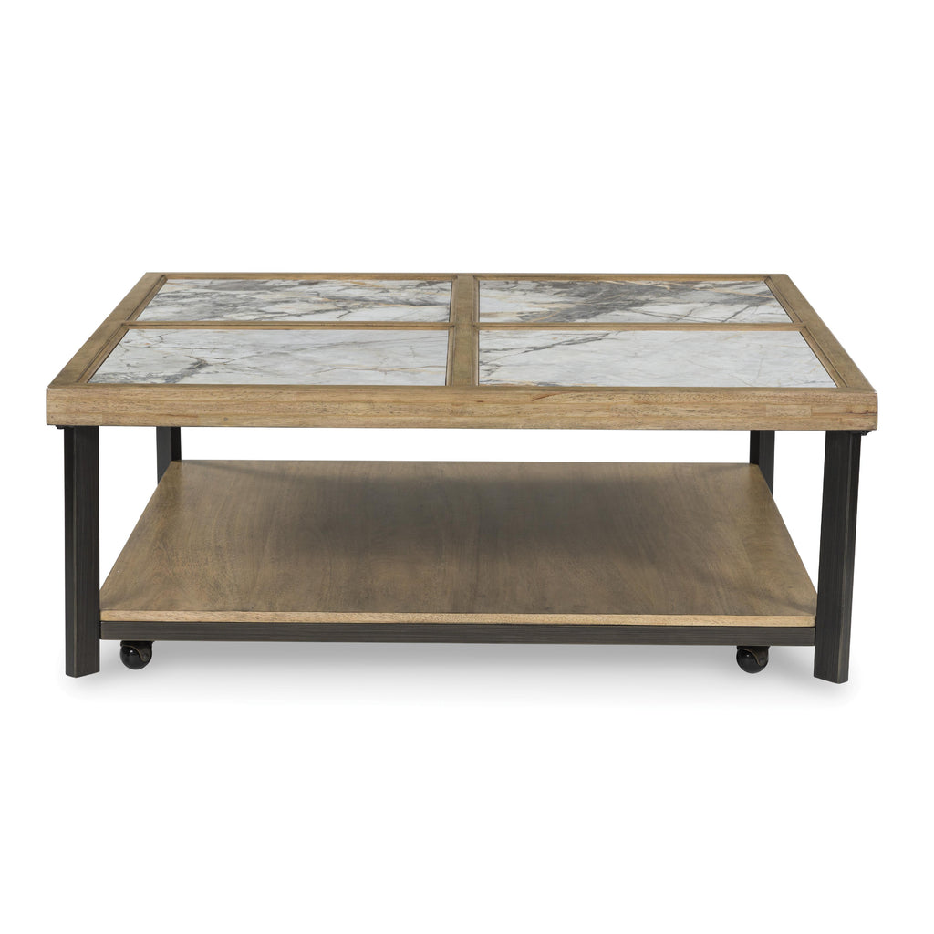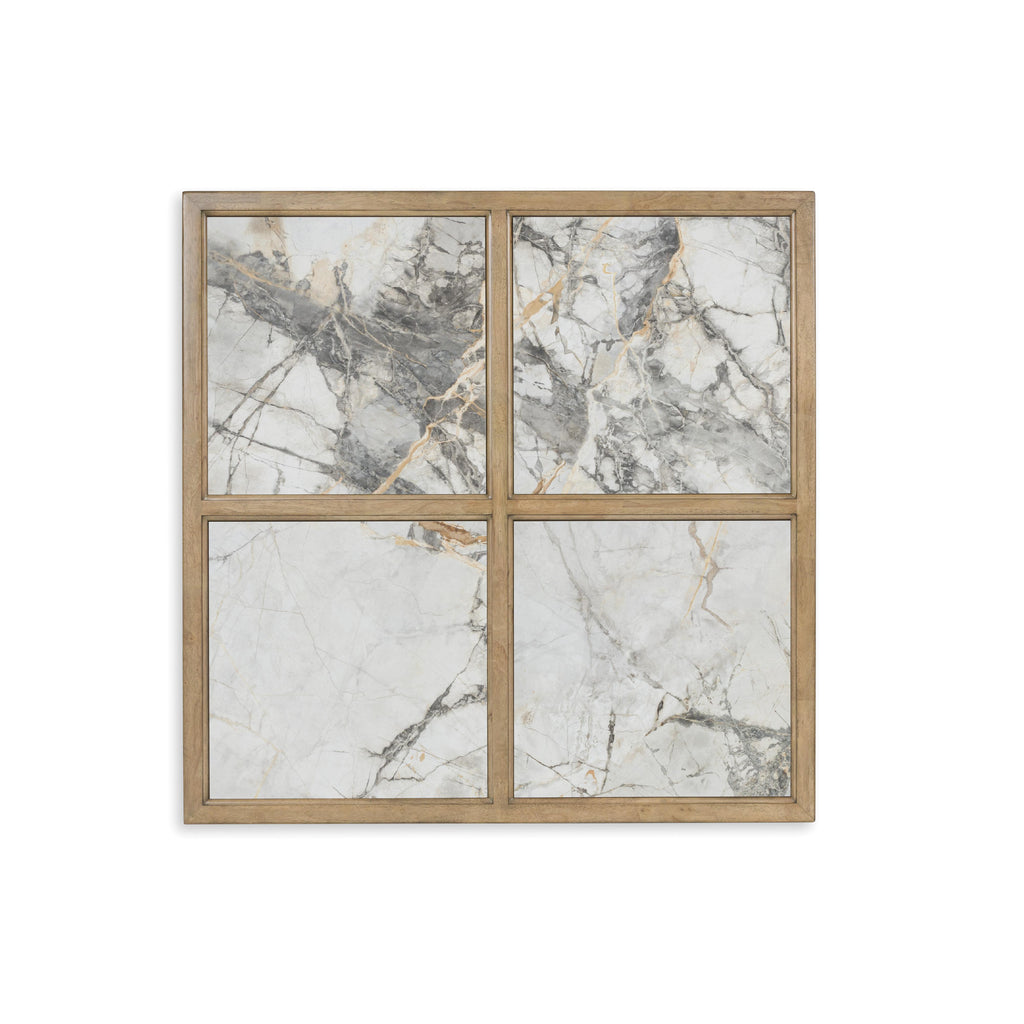 • Made with hardwood solids, mango veneer, sintered stone and metal
