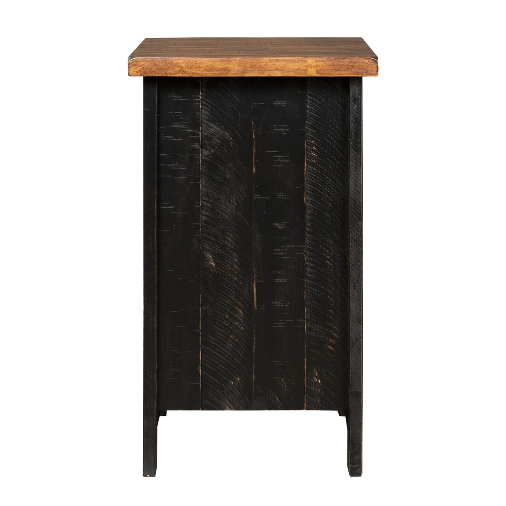 • Two-tone distressed finish (light brown top and rustic vintage black base)
